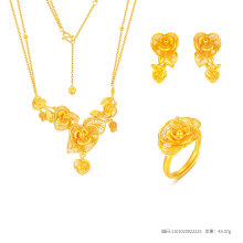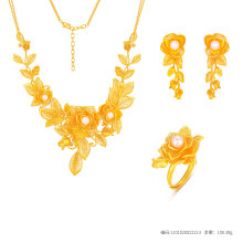 足金精品花嫁浪漫玫瑰珍珠三件套