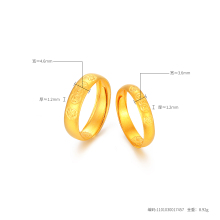 足金精品福字底纹磨砂爆闪仿钻点情侣对戒