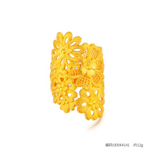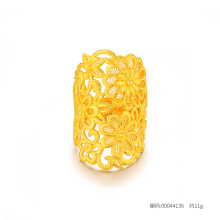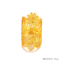 足金精品经典仿钻点米字车花宽版镜面金戒指
