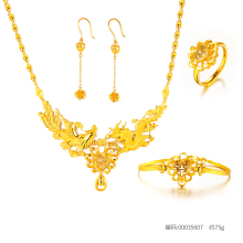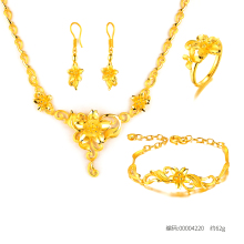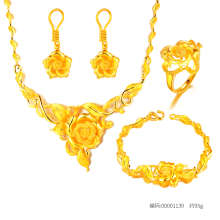 足金精品浪漫婚庆花丝海棠花拉丝三件套