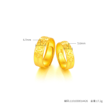 古法经典护佑铜钱卷草纹开口情侣对戒
