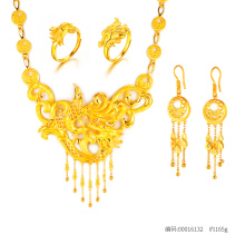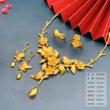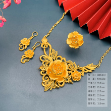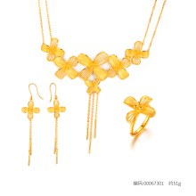 足金精品浪漫婚庆花丝蝴蝶兰拉丝三件套