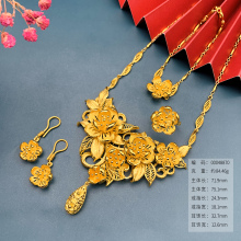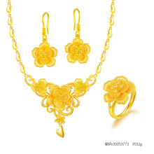 足金精品浪漫婚庆花丝玫瑰花拉丝三件套