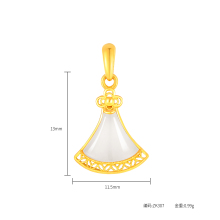 足金和田玉绚丽螺钿福蝶将至吊坠