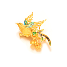 古法经典花卉喜登高枝鸟螺钿胸针
