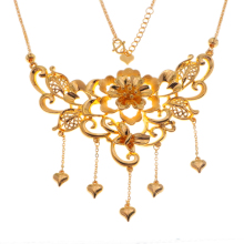 无氰硬金花卉卷草纹镂空爱心流苏婚庆套链