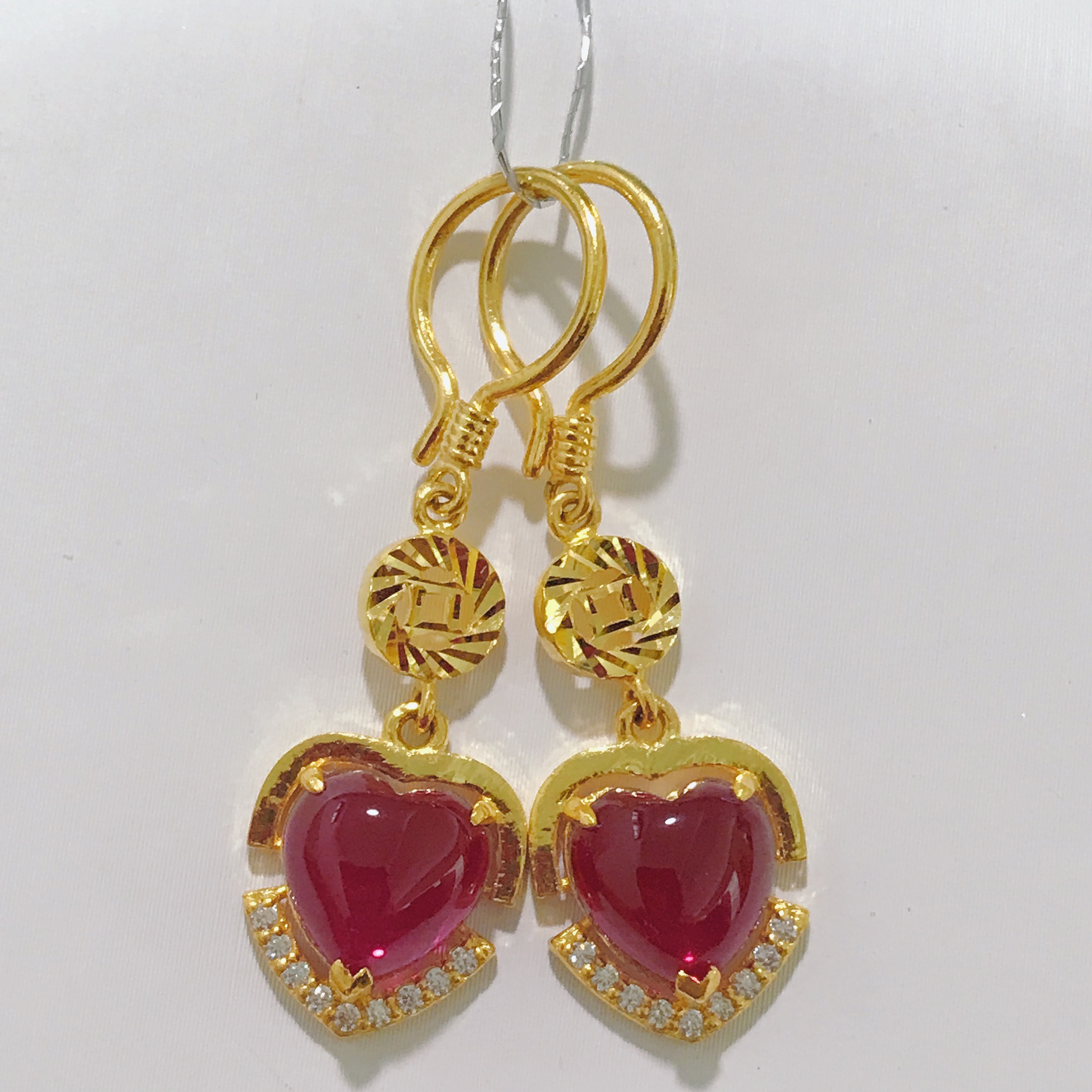 足金合成红宝石耳钩