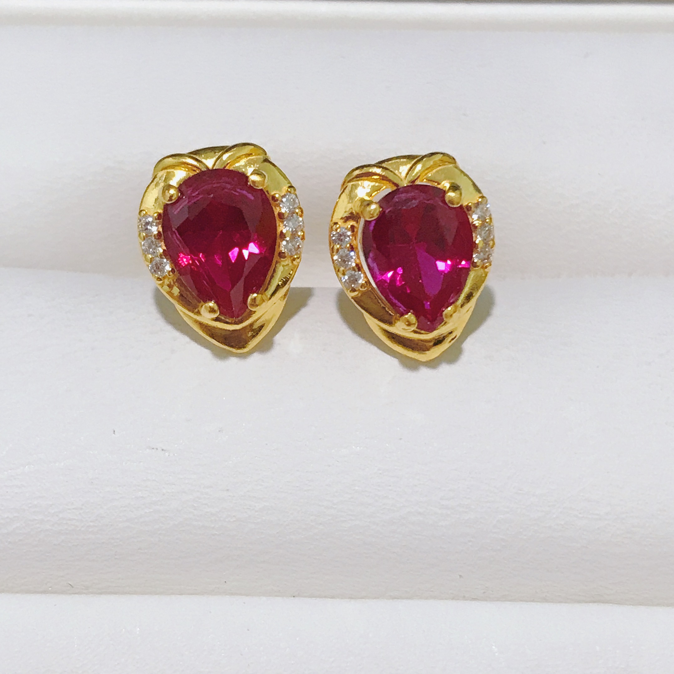 足金合成红宝石耳钉