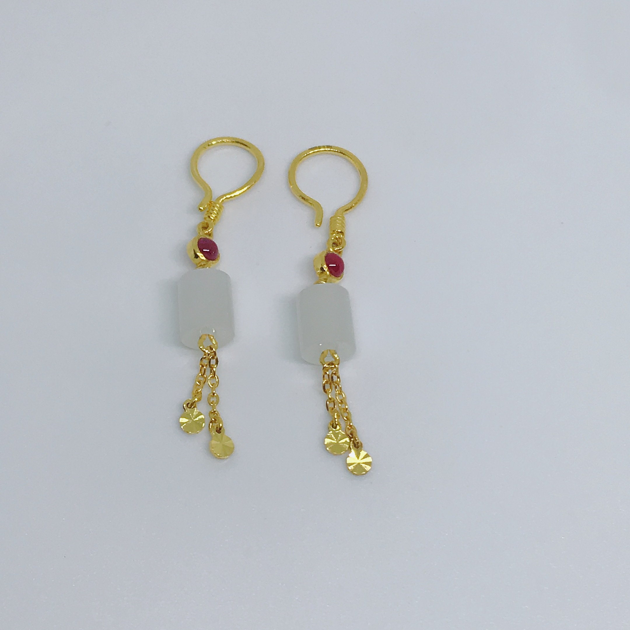 足金和田玉耳钩