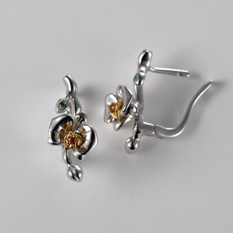 18K金-铂Pt950石榴石橙宝石耳饰
