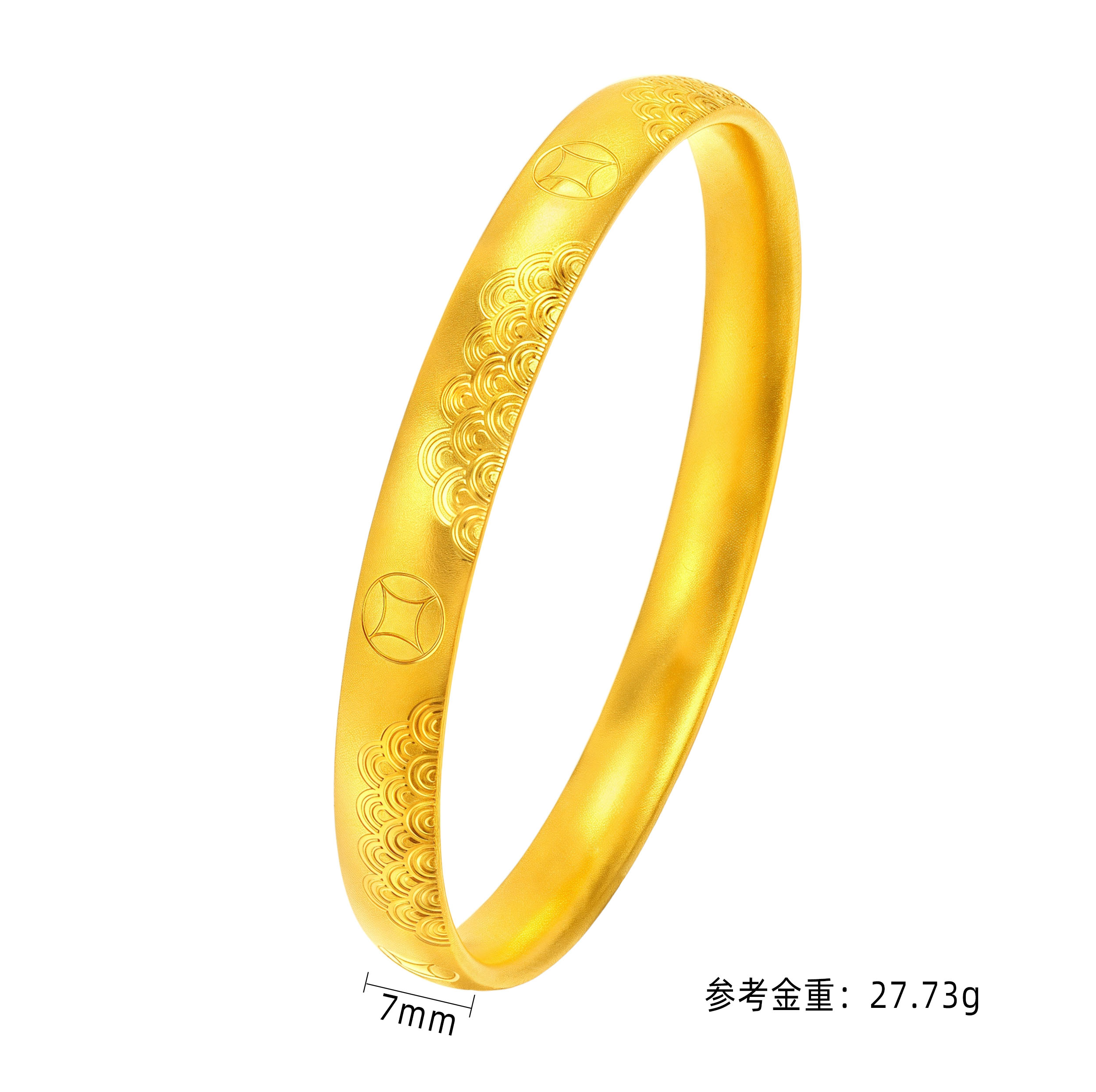 >>古法金币时尚弧面固口镯