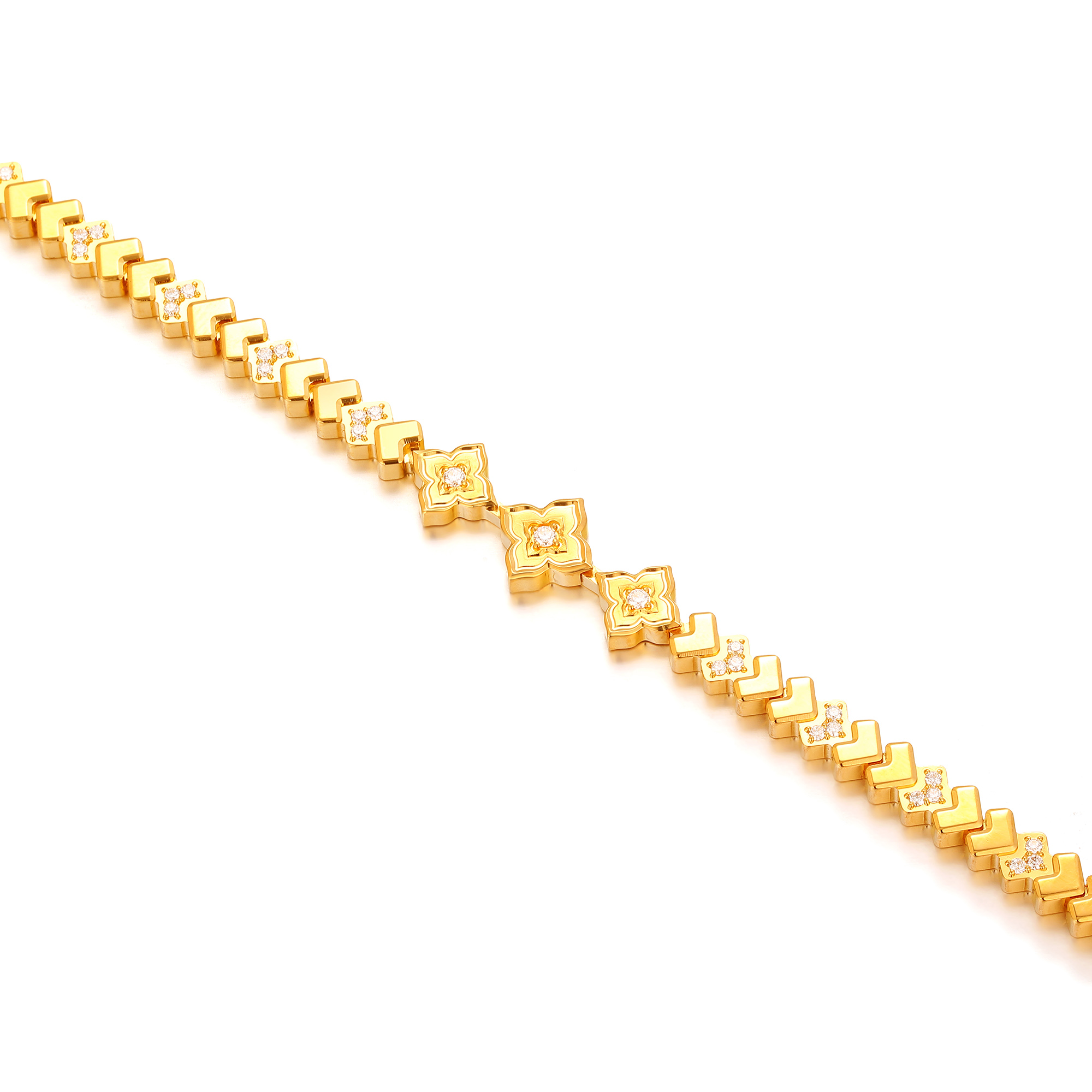足金精品钻石镶嵌镜面几何时尚手链