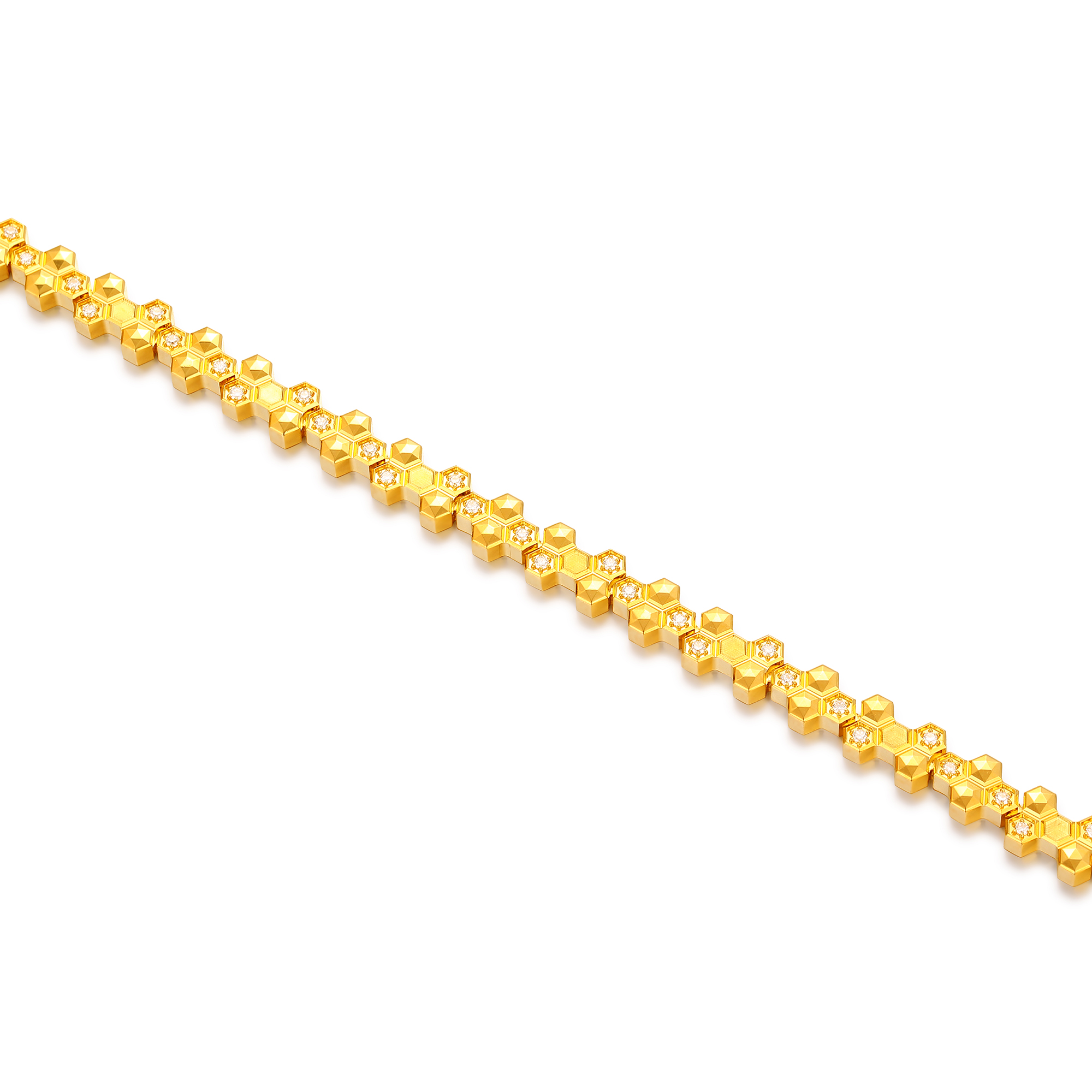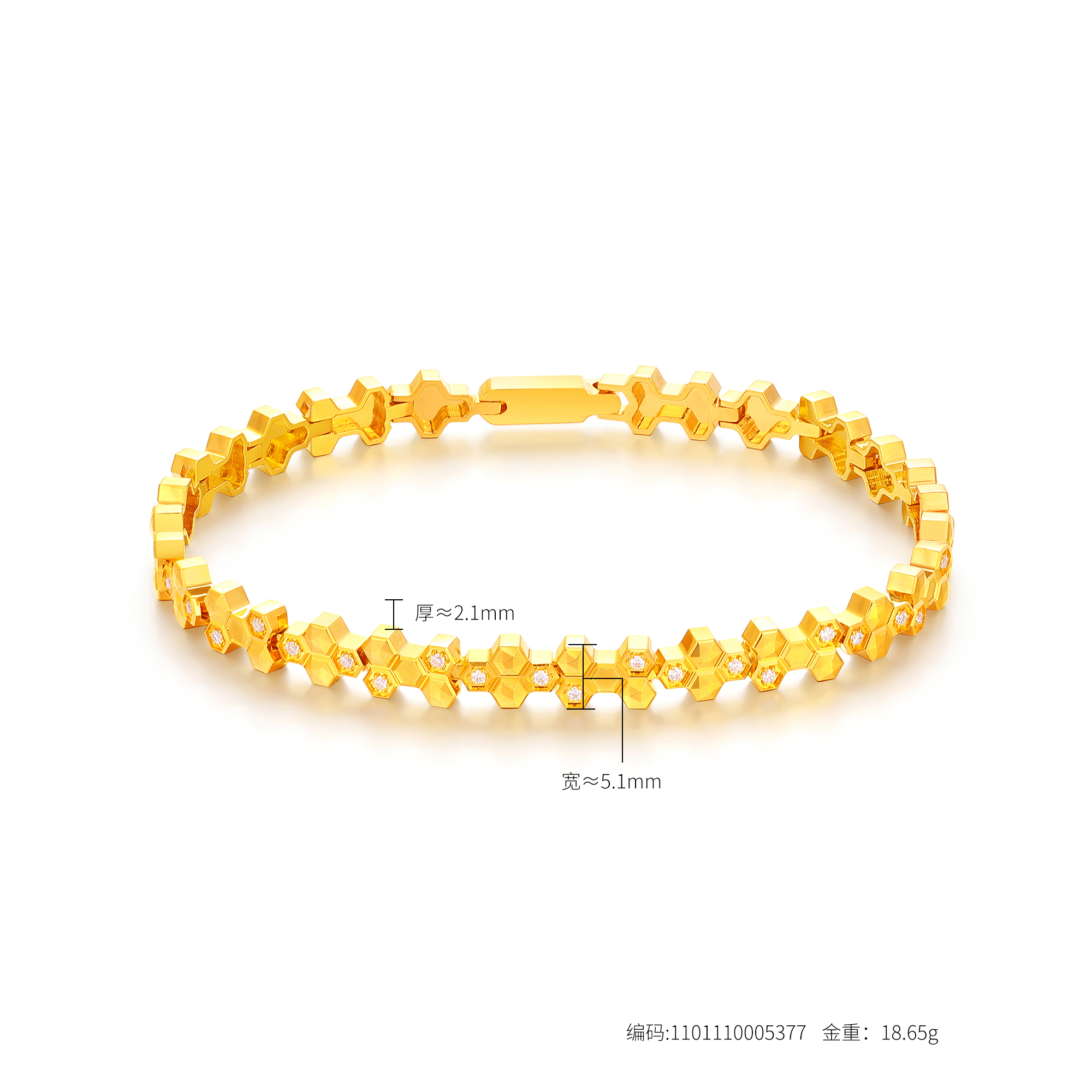 >>足金精品钻石镶嵌镜面个性蜂巢时尚手链