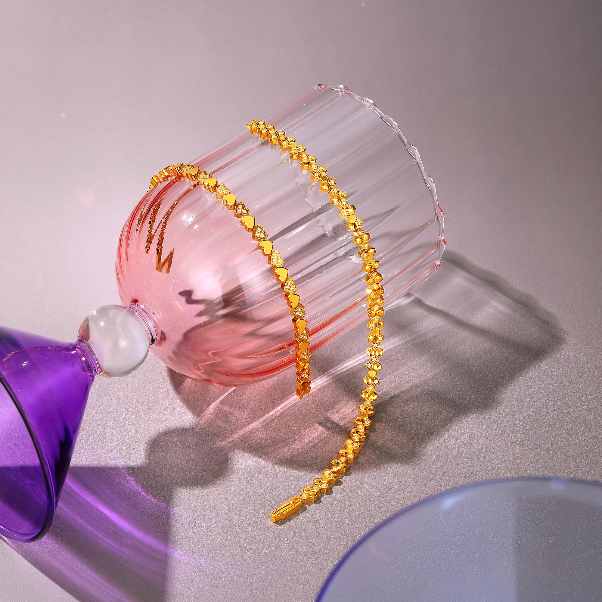 足金精品钻石镶嵌镜面浪漫爱心时尚手链