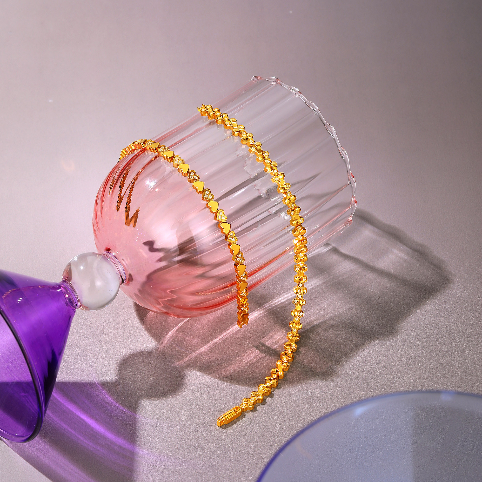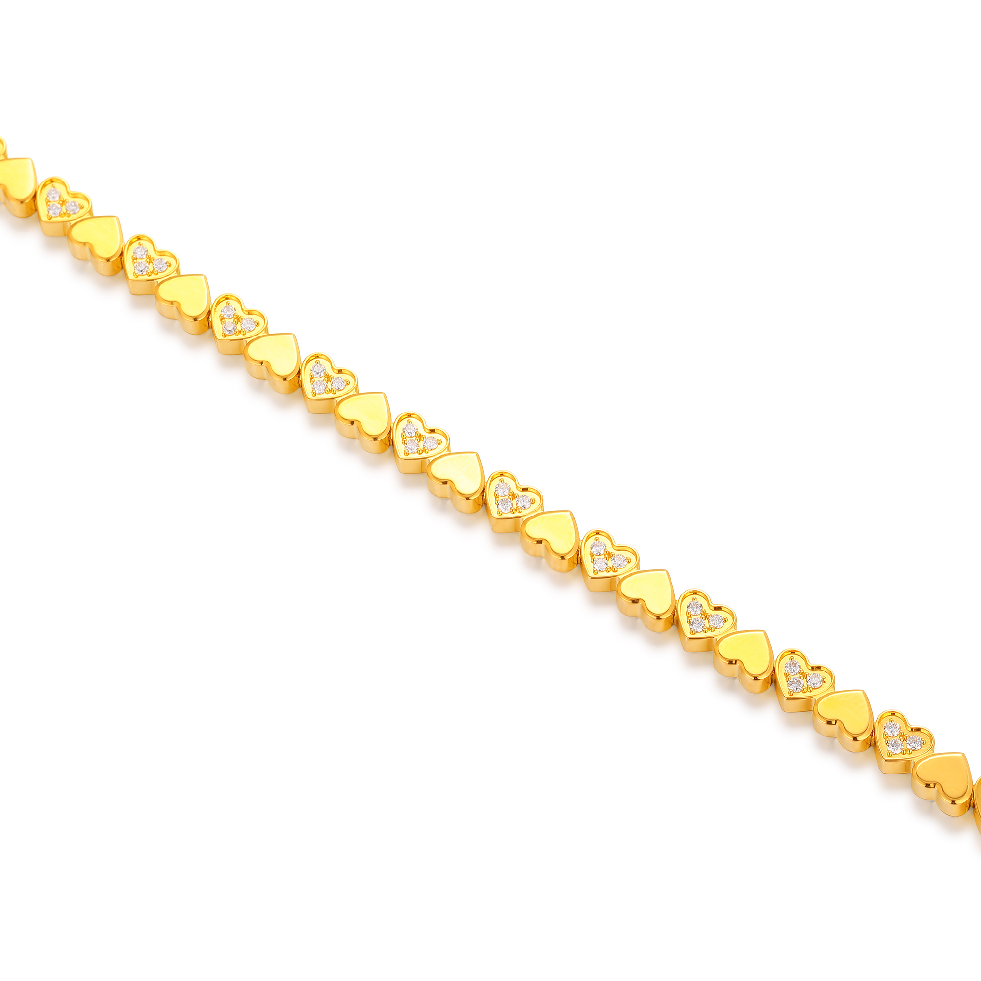 足金精品钻石镶嵌镜面浪漫爱心时尚手链