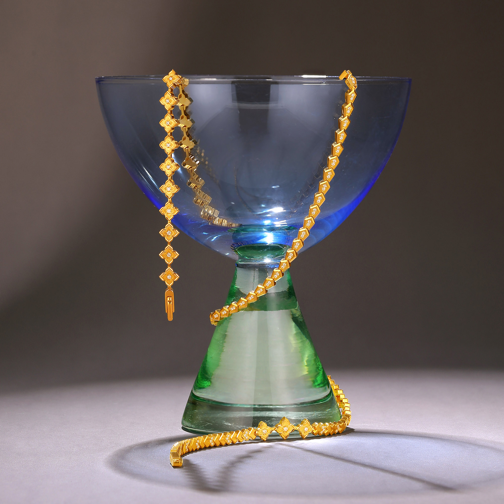 足金精品钻石镶嵌镜面几何时尚手链