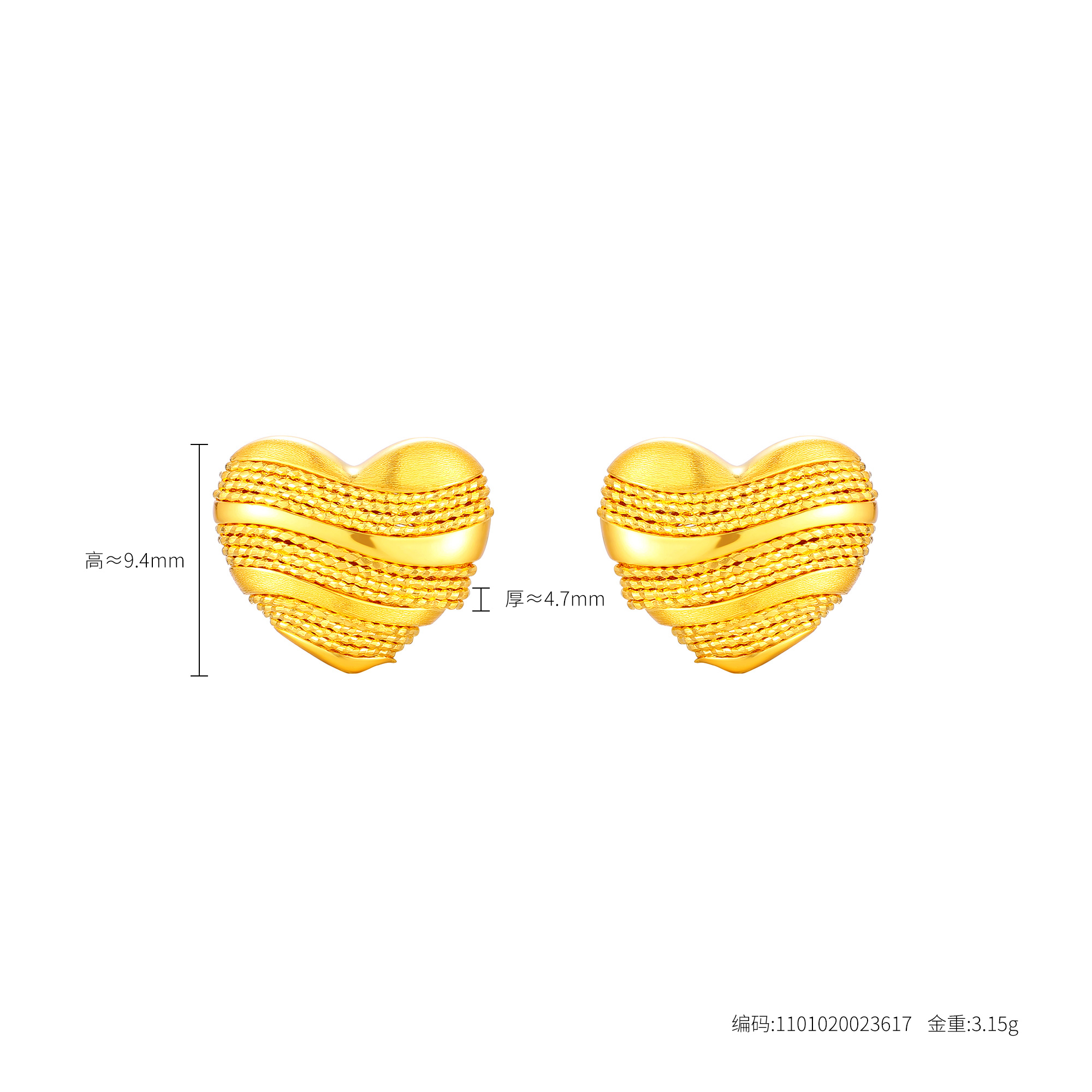 足金精品甜蜜心形丝绒绕线时尚三件套