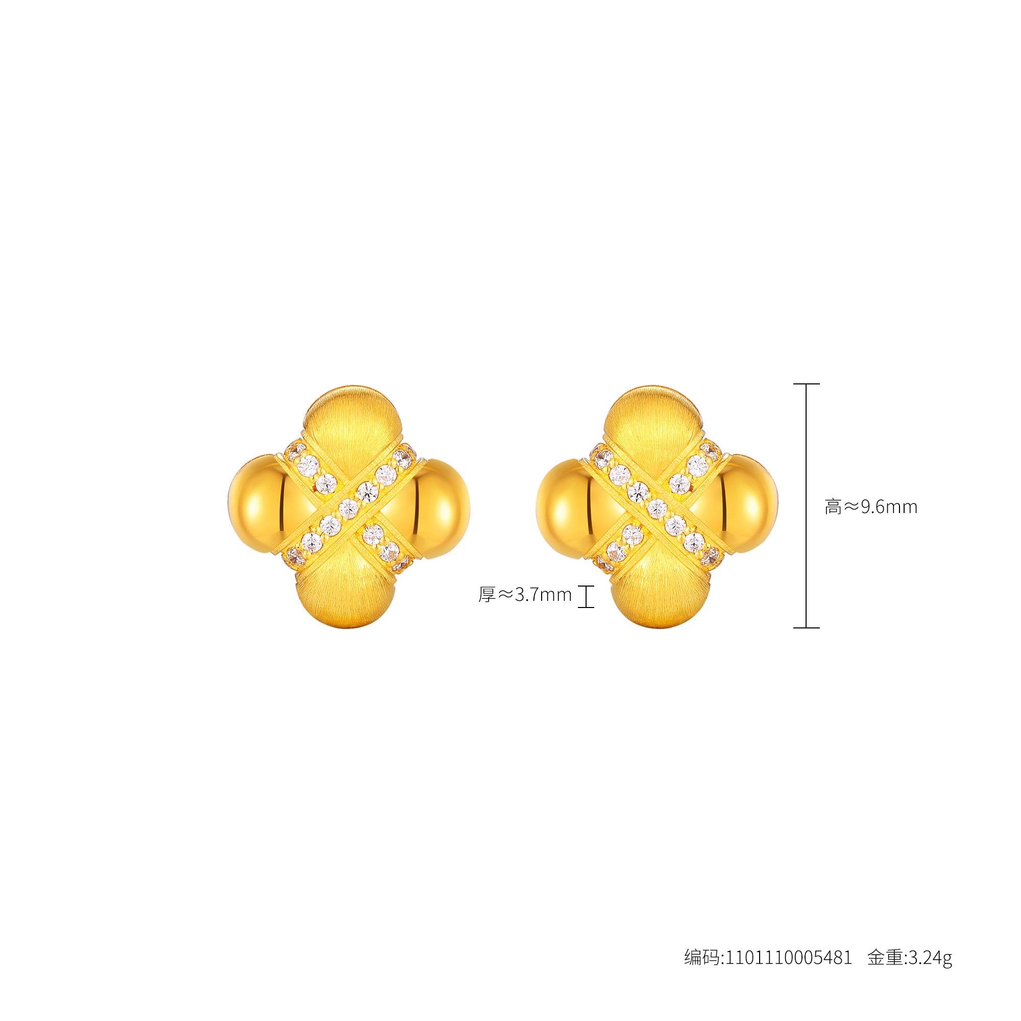 足金精品幸运美好四叶草钻石亮面丝绒套装