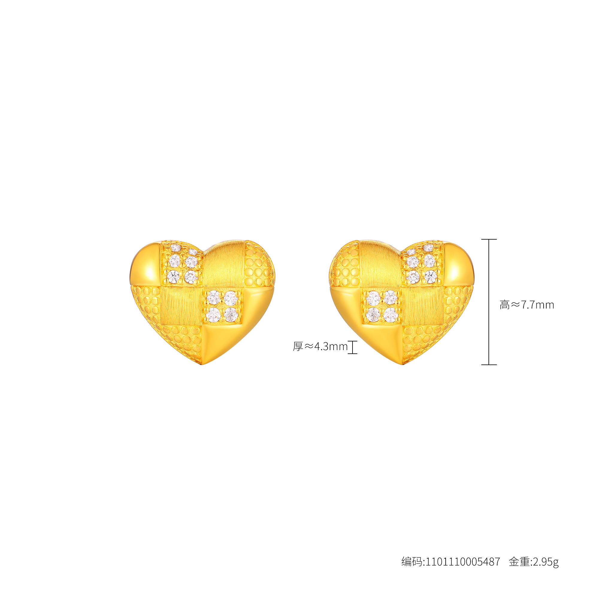 足金精品经典时尚爱心钻石亮面丝绒套装