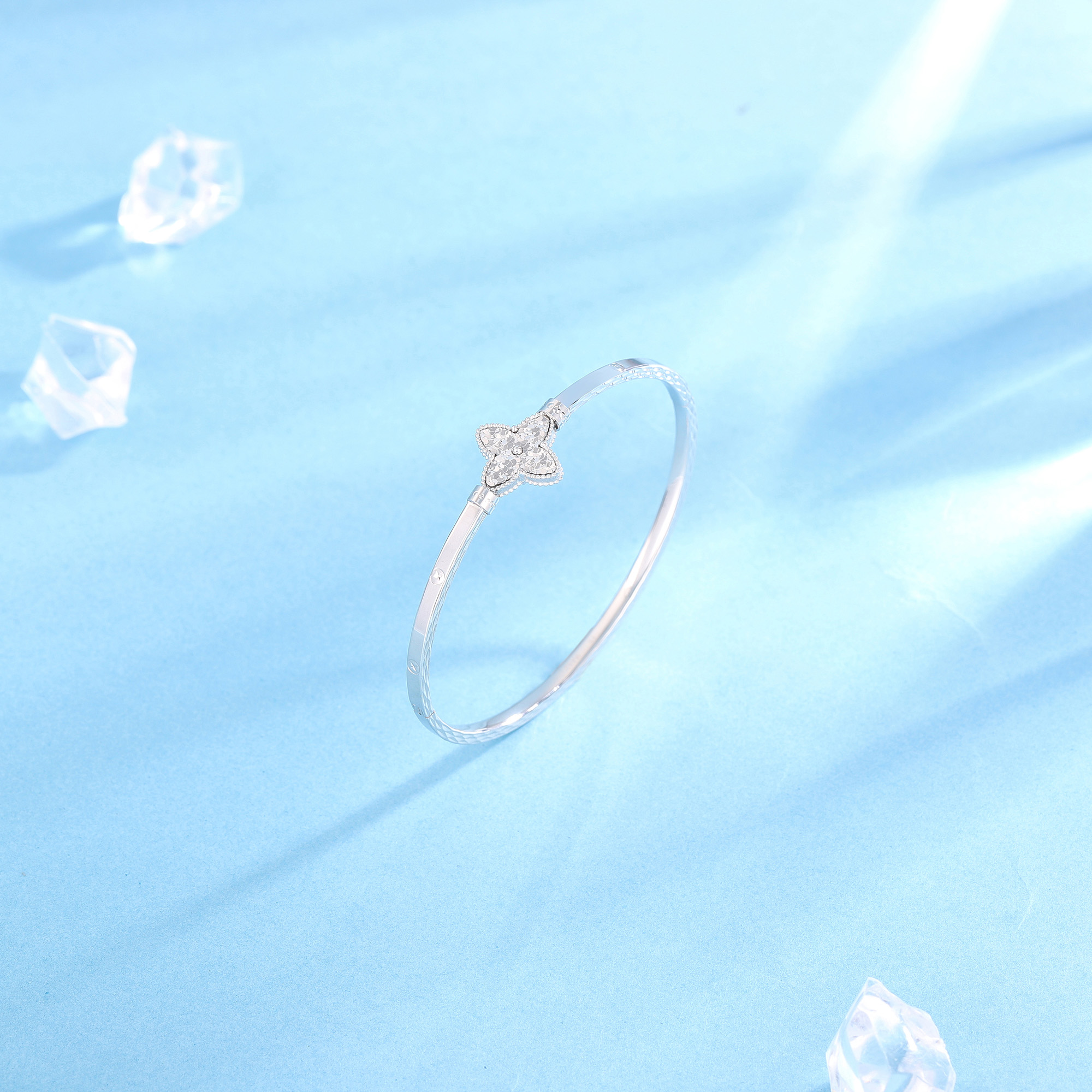 铂金闪耀碎碎金四叶草仿钻卡扣手镯