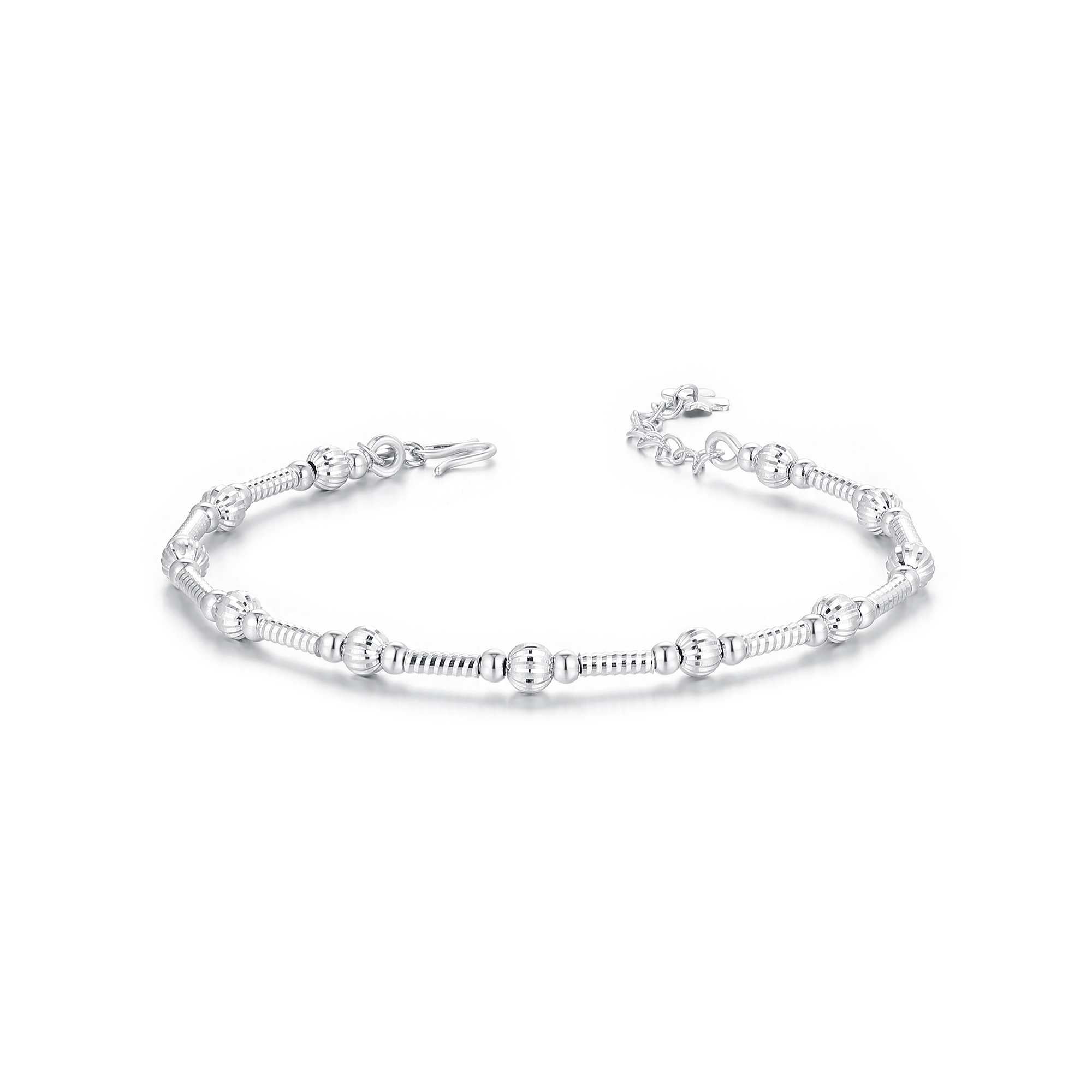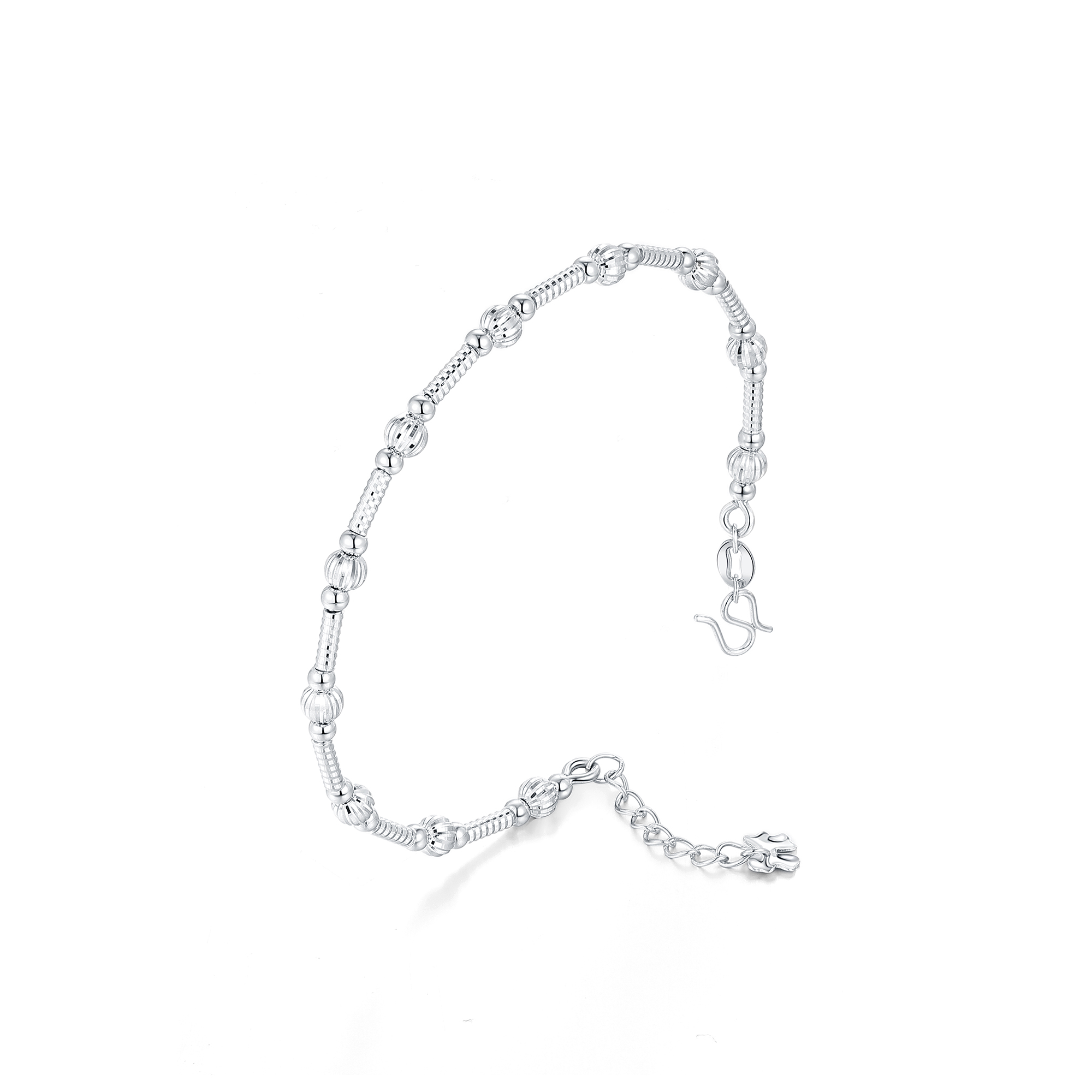 >>铂金时尚车花珠灯笼珠镯链