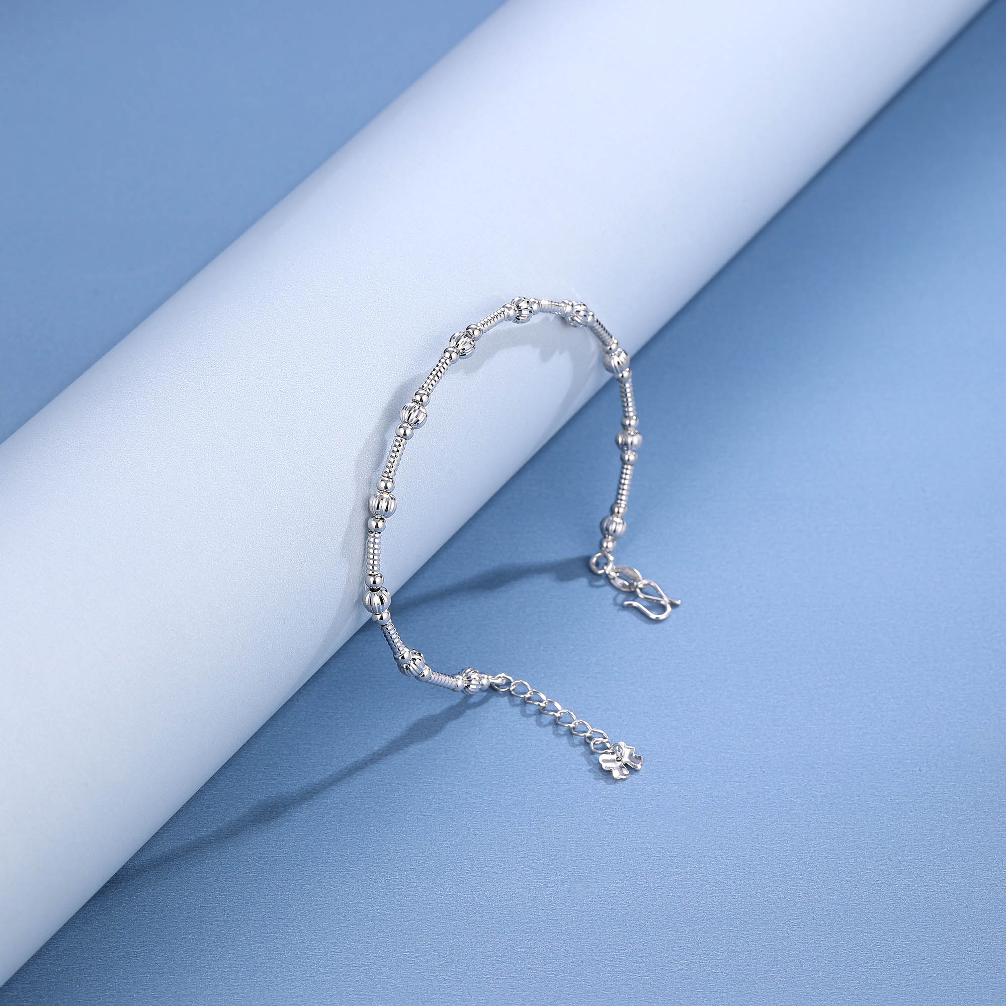 铂金简约时尚几何刻面筒珠镯链