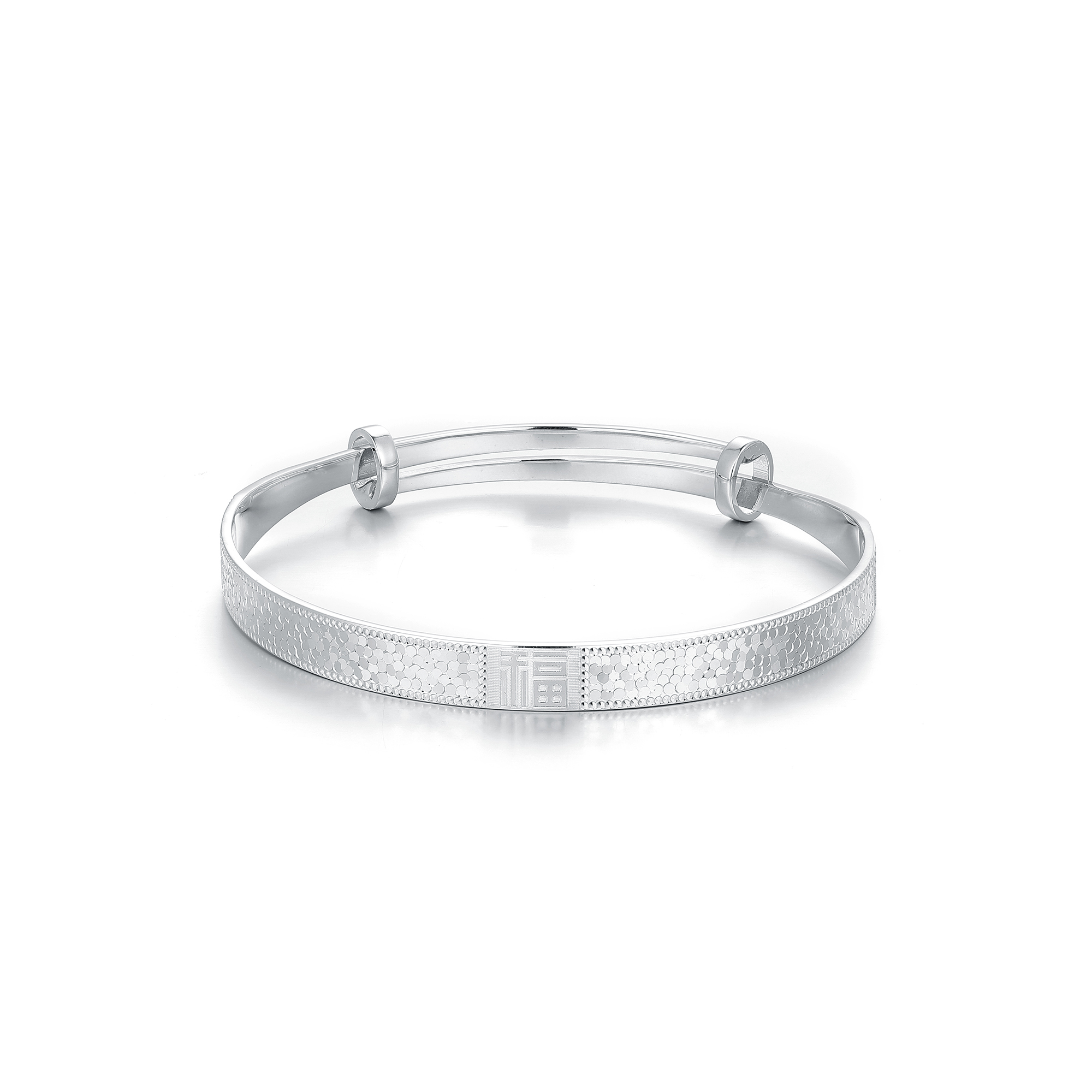 铂金闪耀碎碎金仿钻点祈福福字推拉手镯