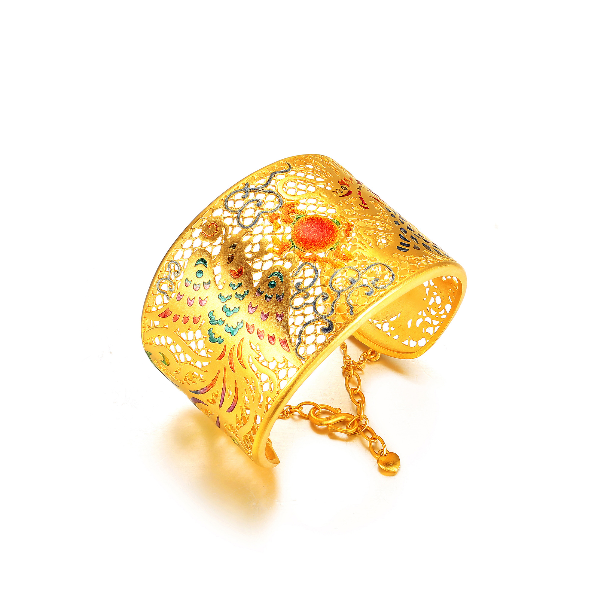 古法高级臻宝奢华点螺丹凤如愿镯链