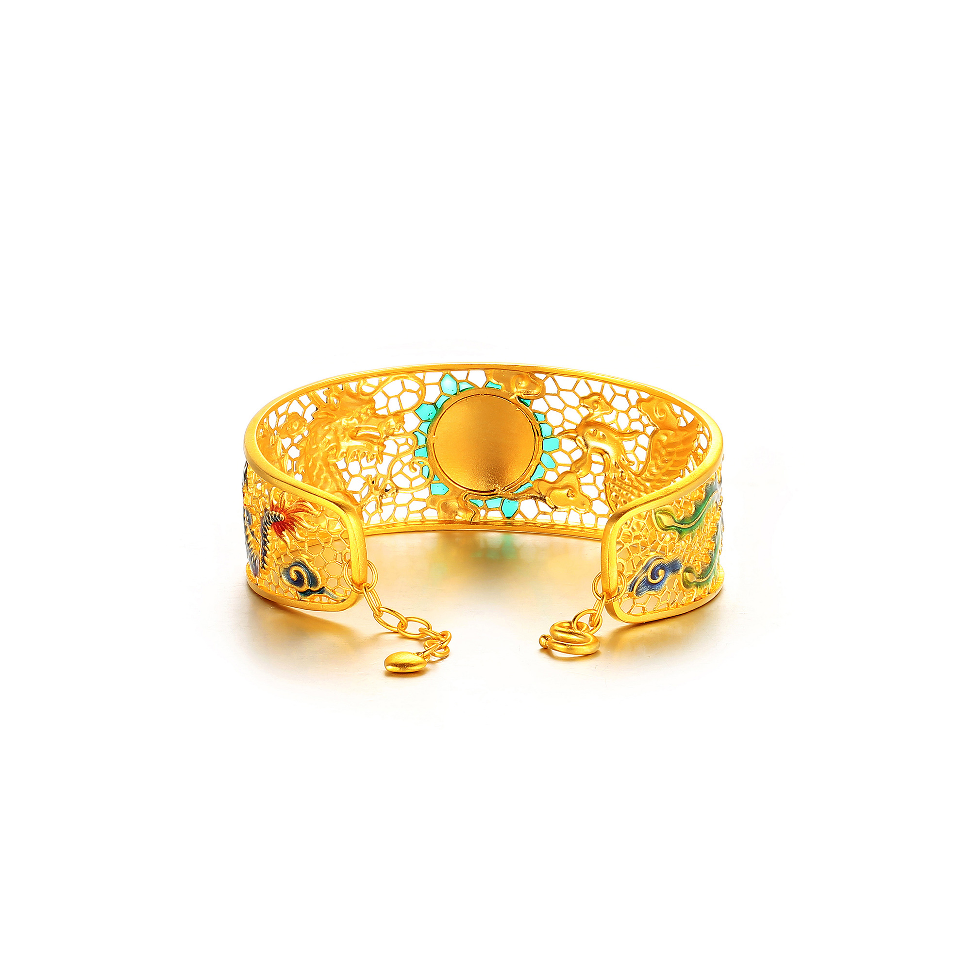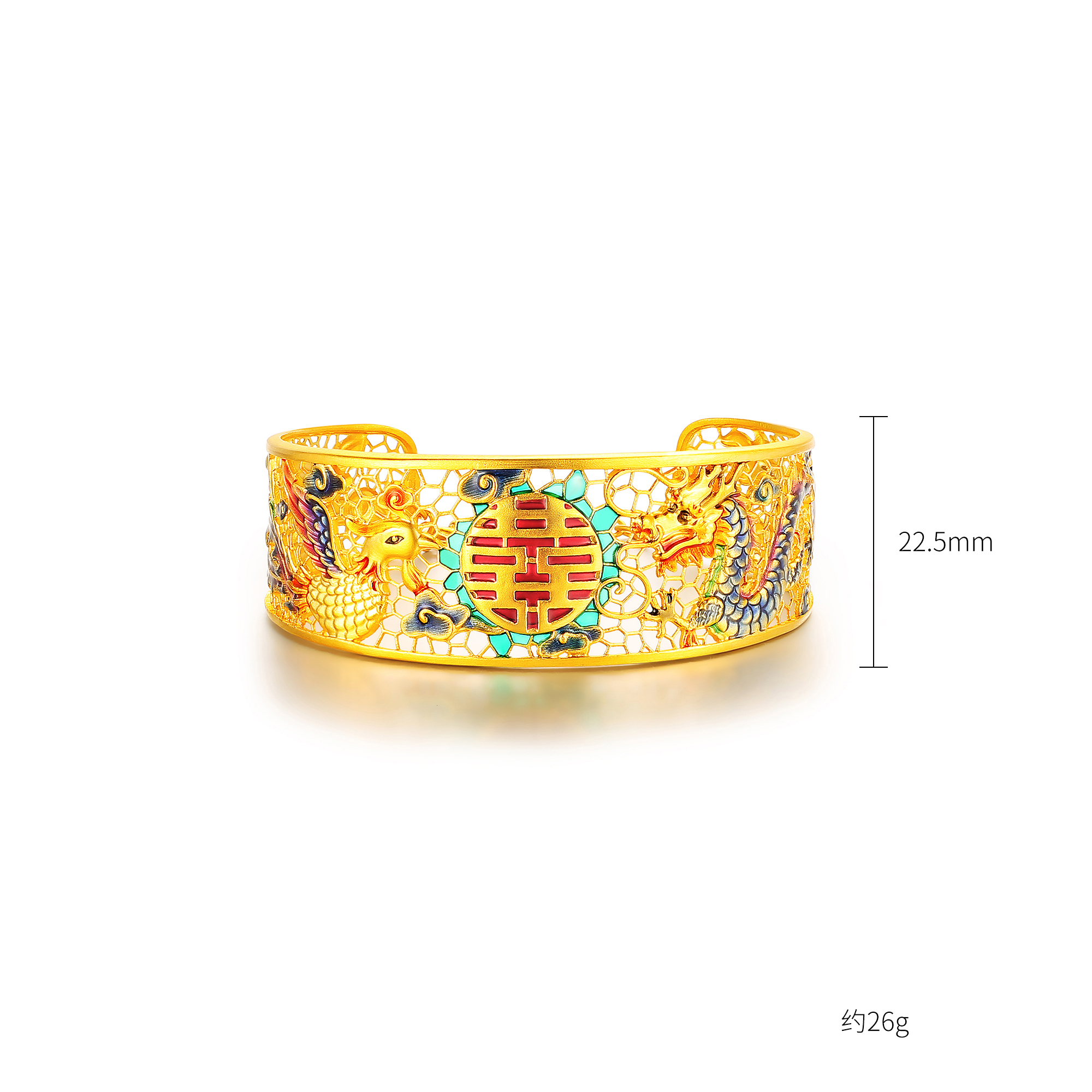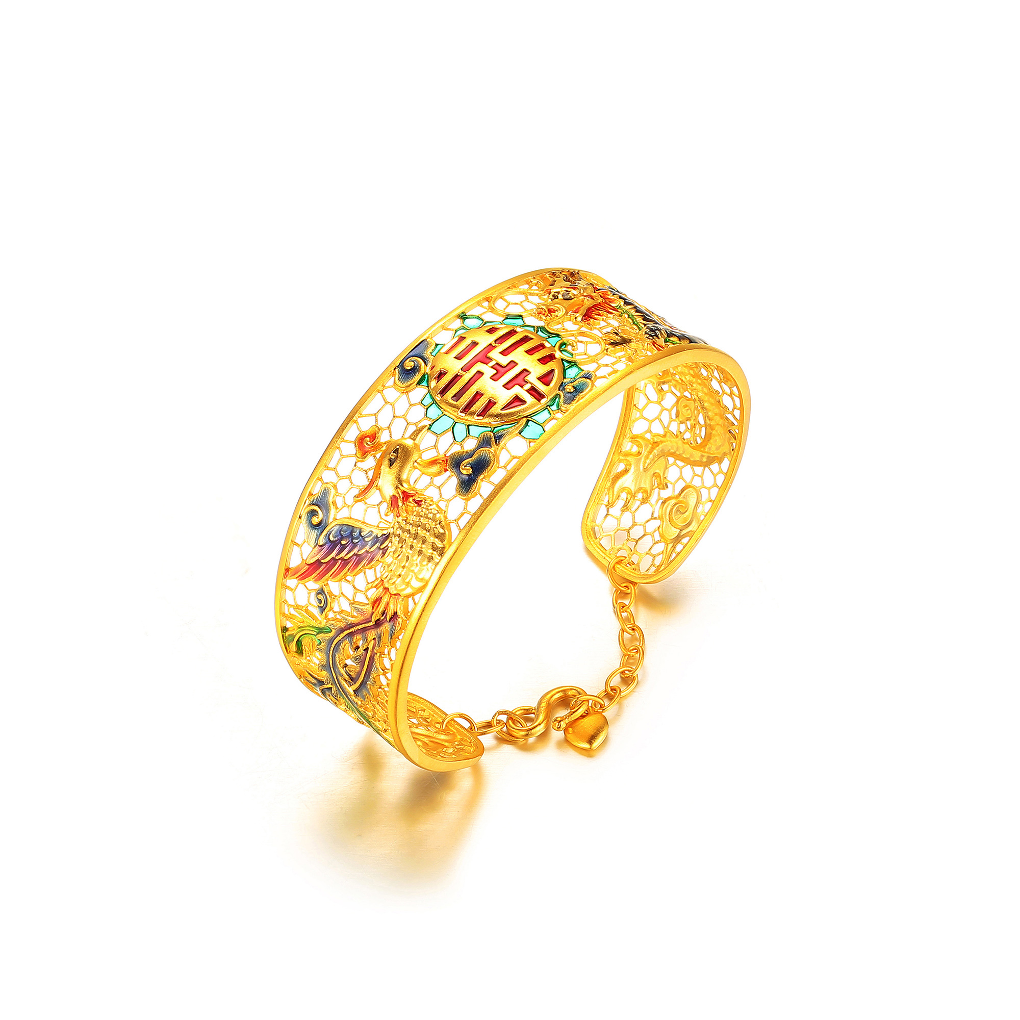 >>古法经典龙凤婚庆双喜鎏彩镯链