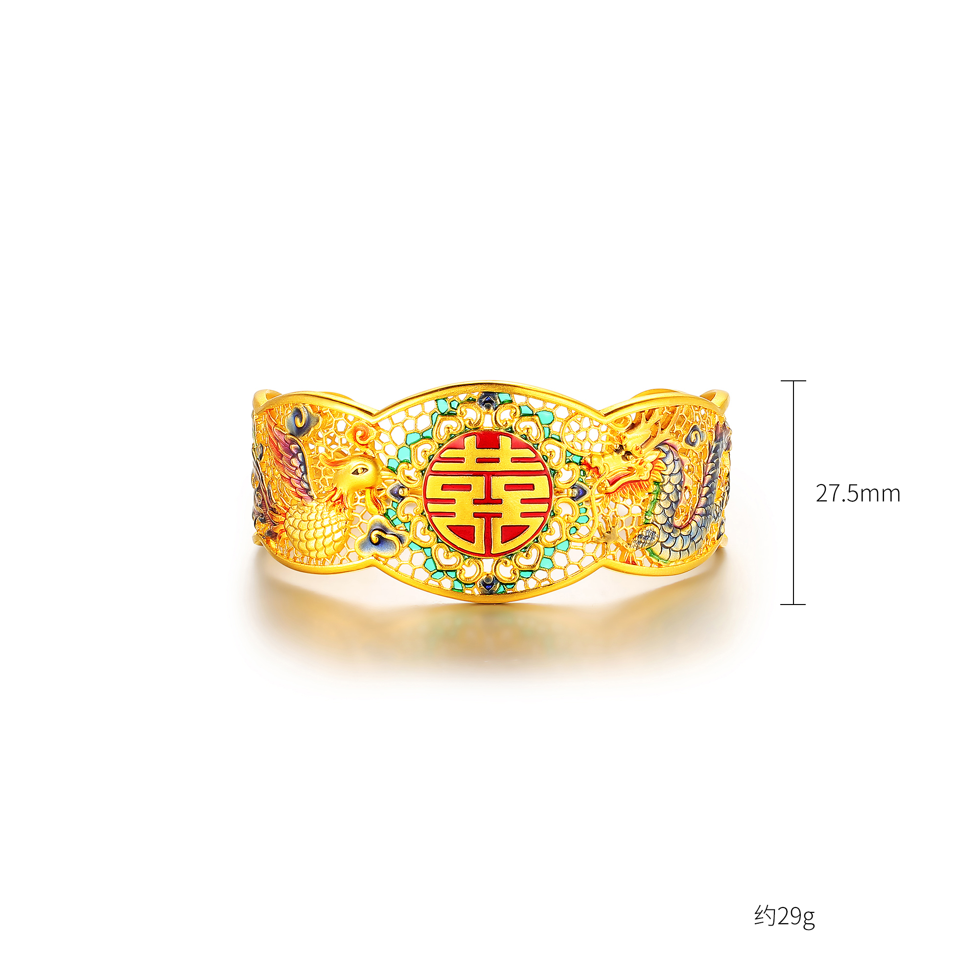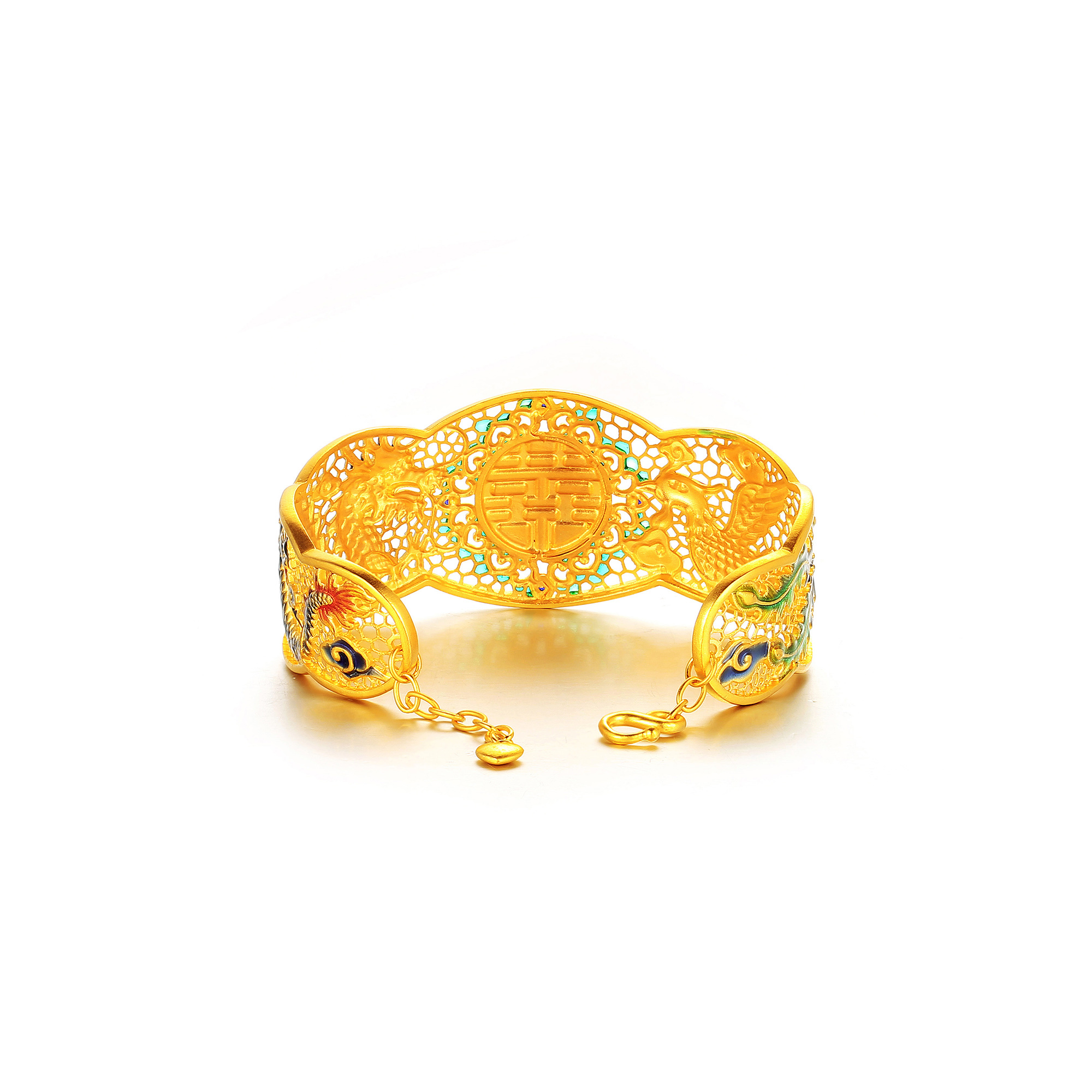 >>古法经典龙凤婚庆双喜鎏彩镯链
