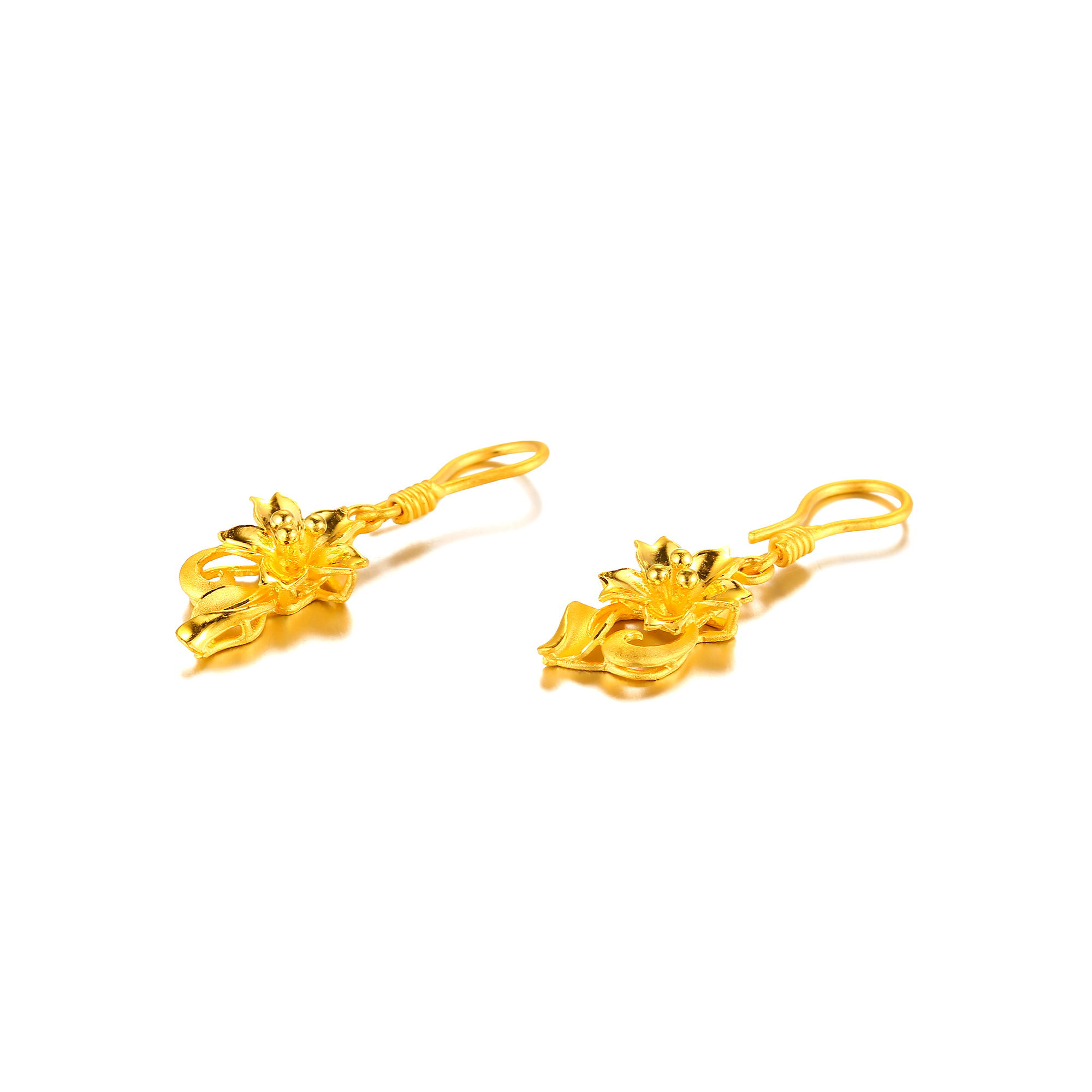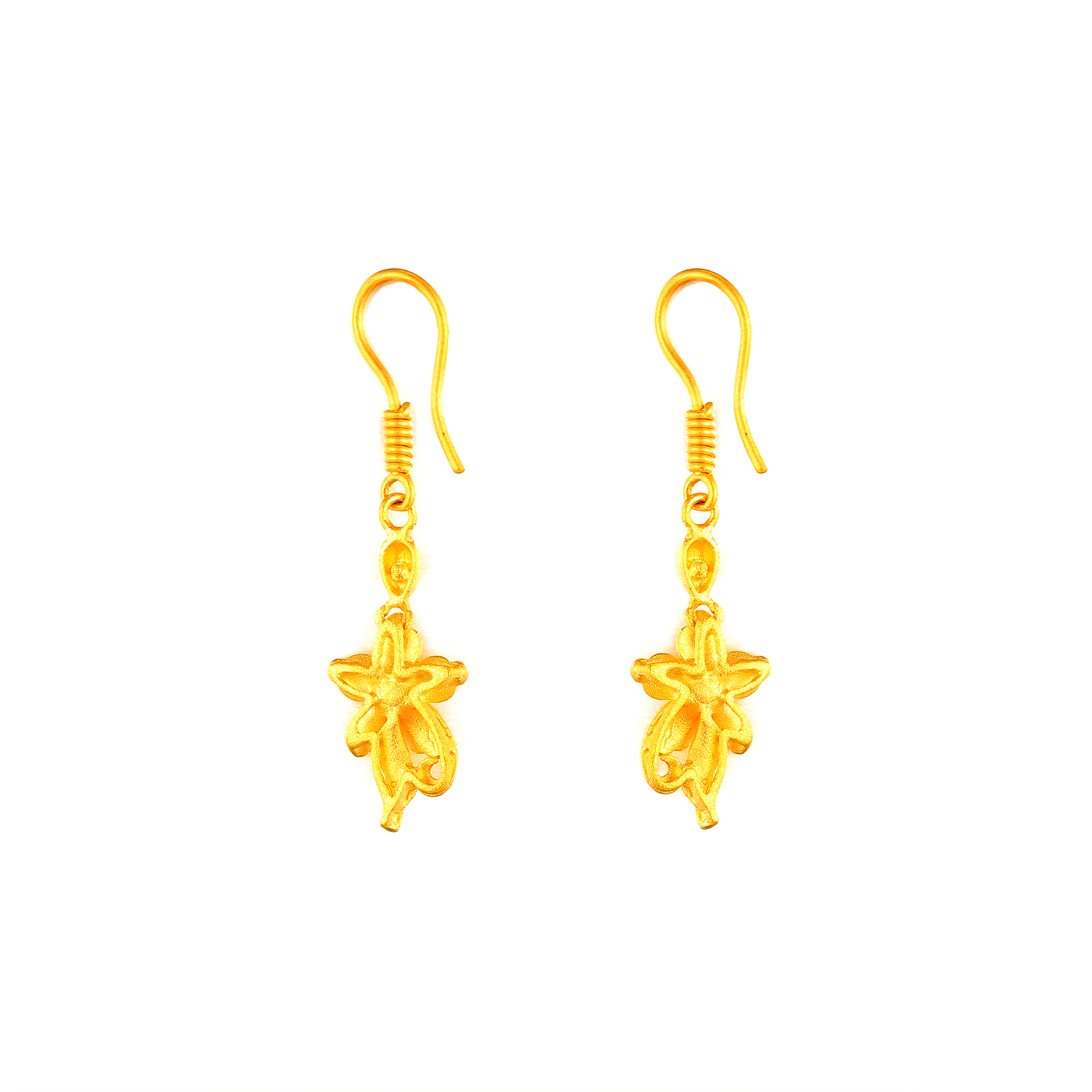 足金精品浪漫婚庆花丝蝴蝶兰拉丝三件套