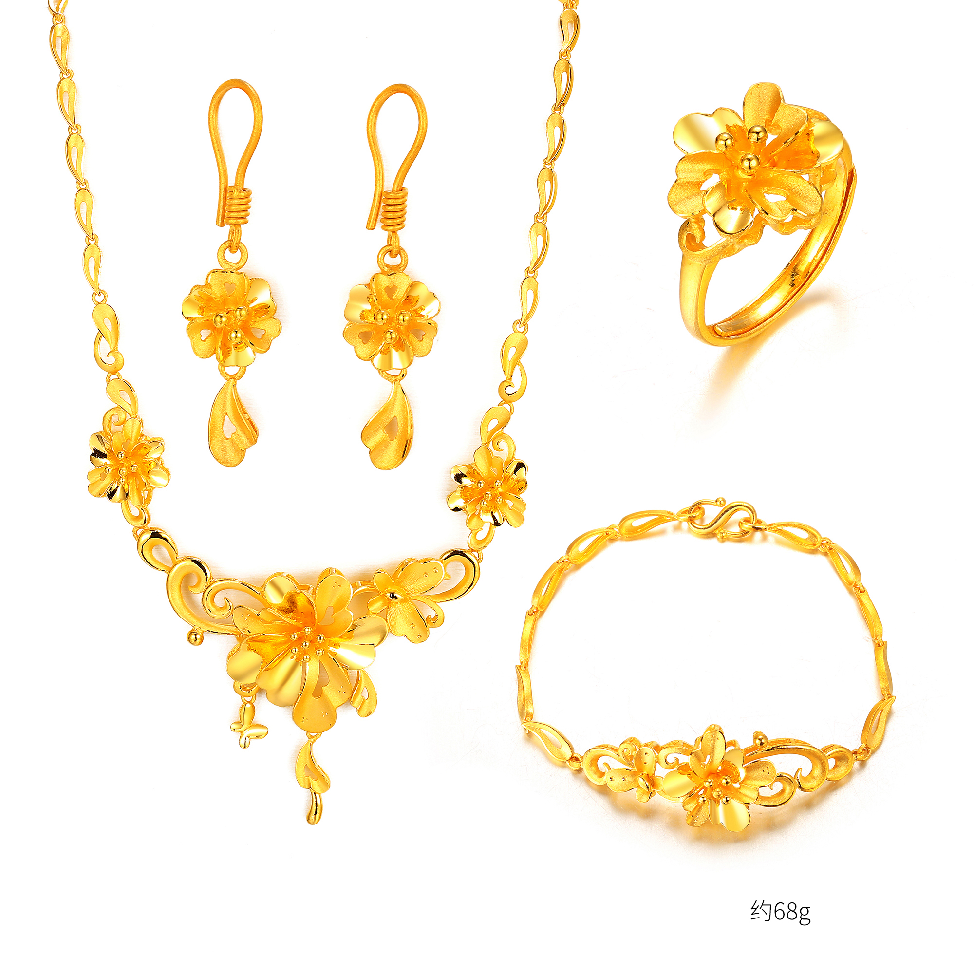 足金精品浪漫婚庆花丝蝴蝶兰拉丝三件套