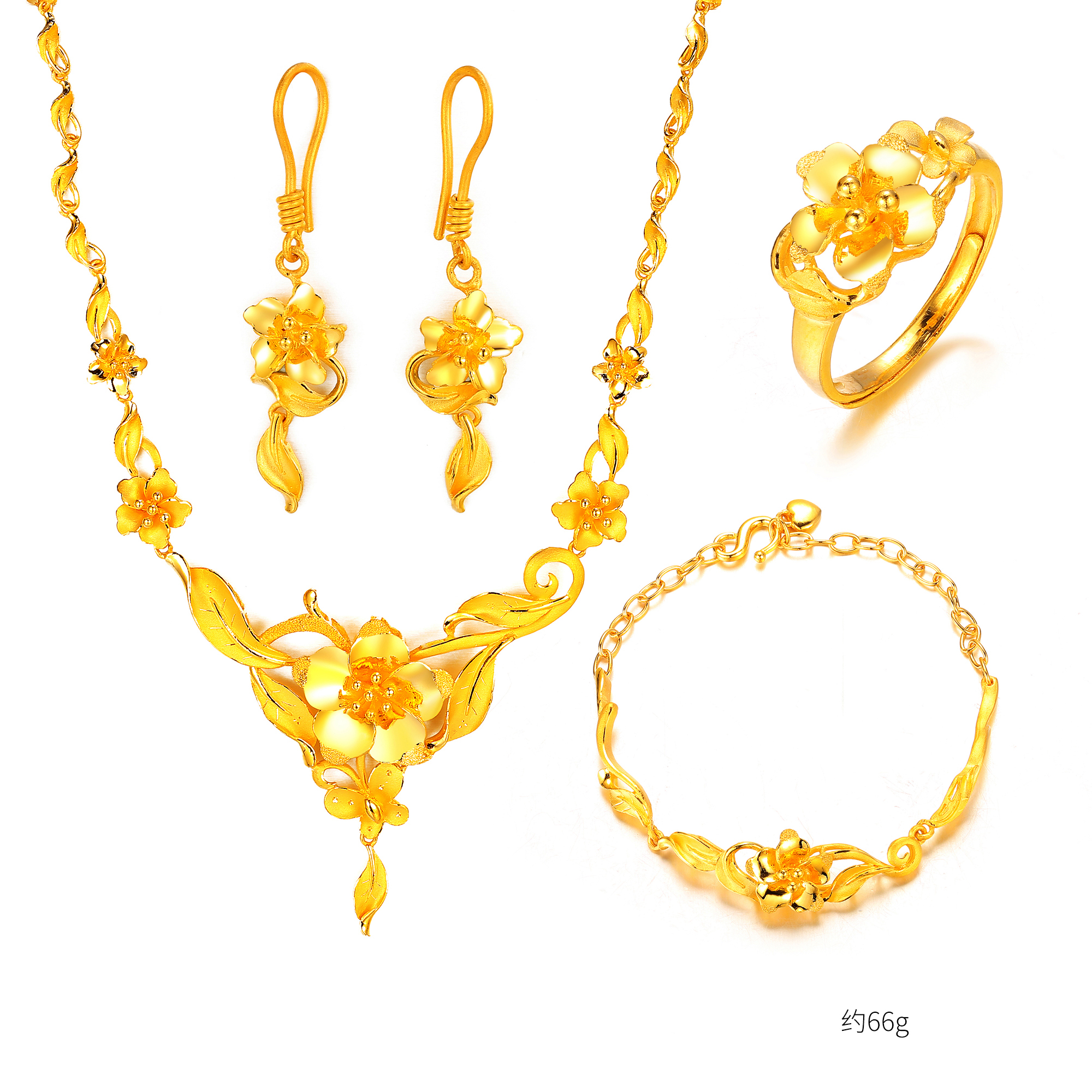 足金精品浪漫婚庆花丝蝴蝶兰拉丝三件套