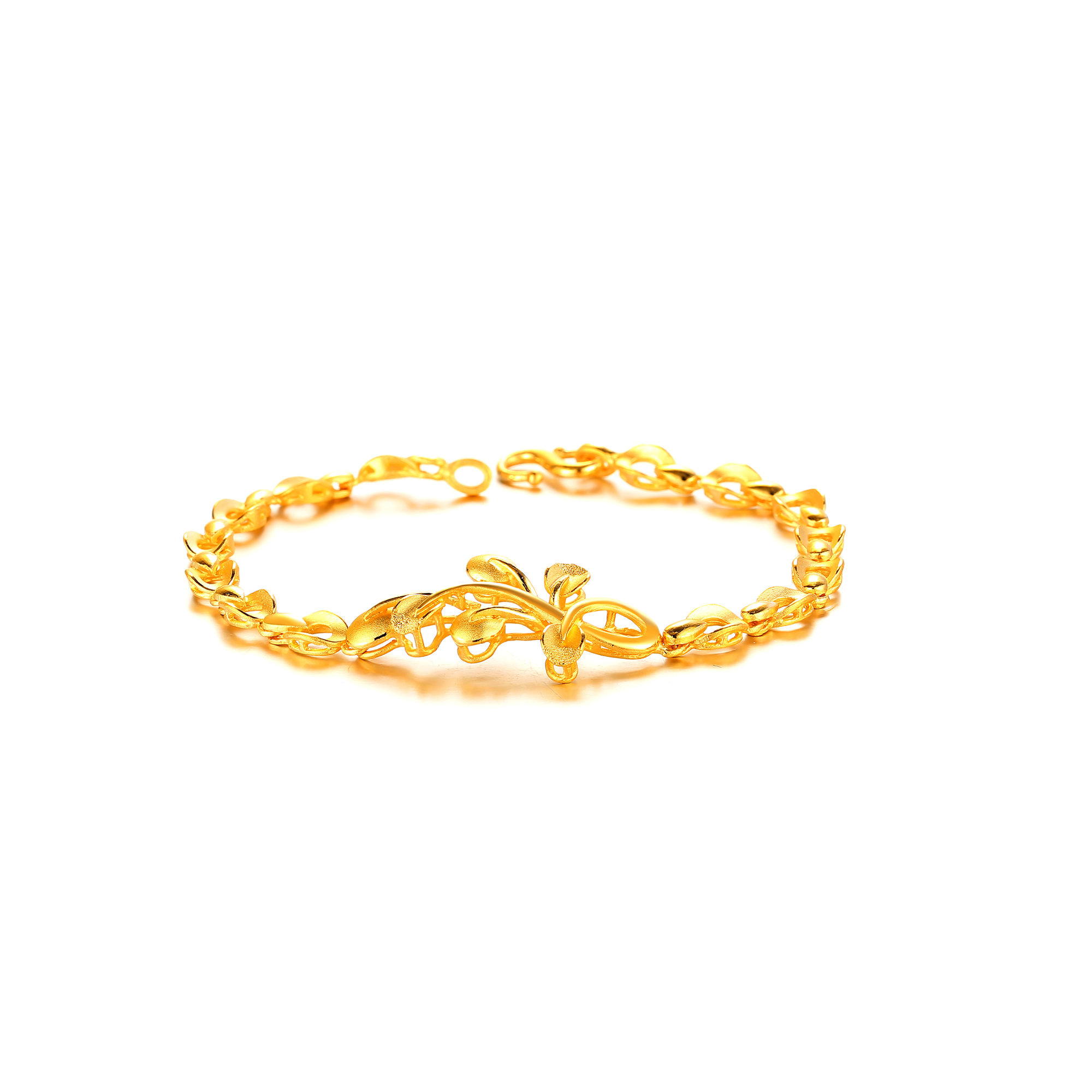 足金精品浪漫婚庆花丝蝴蝶兰拉丝三件套