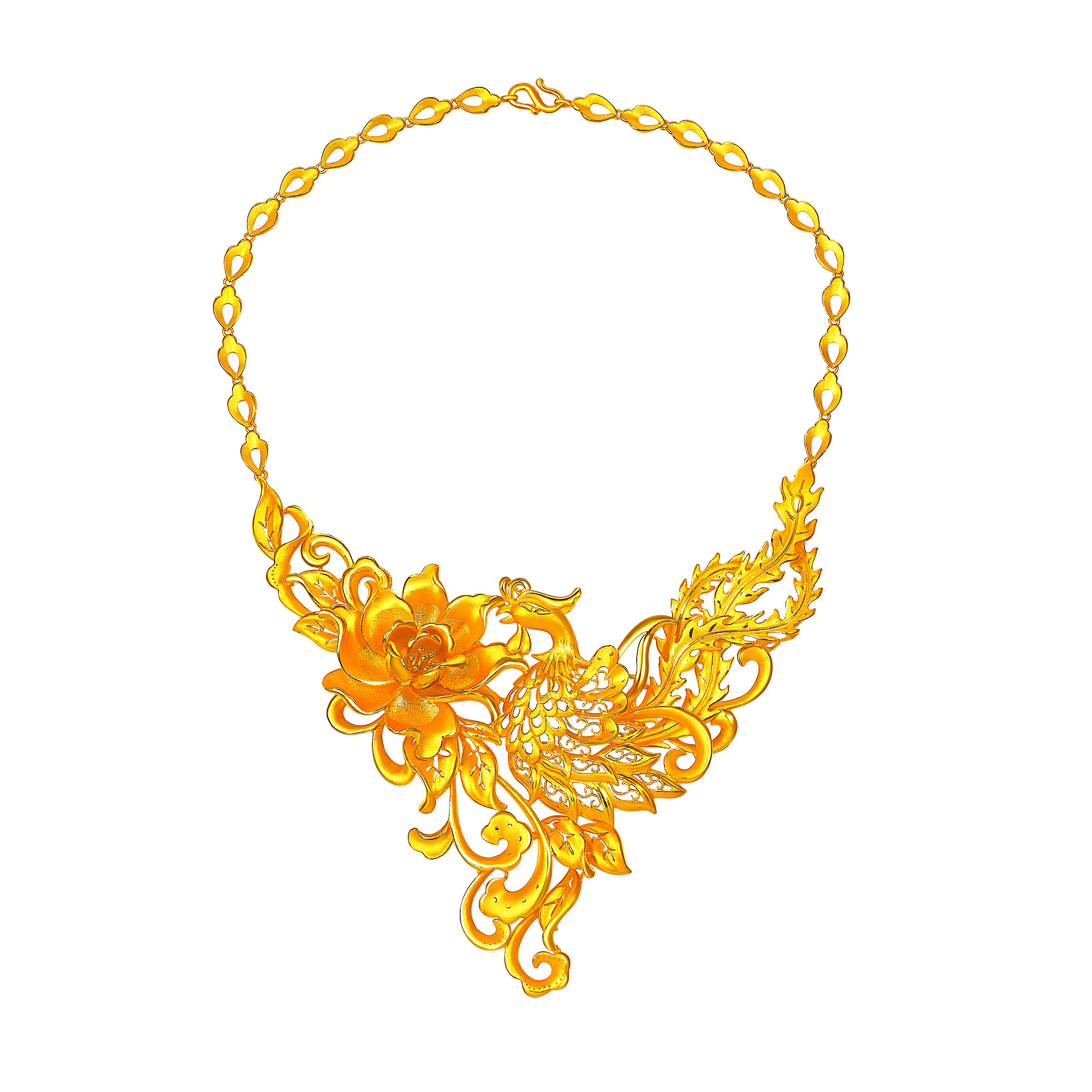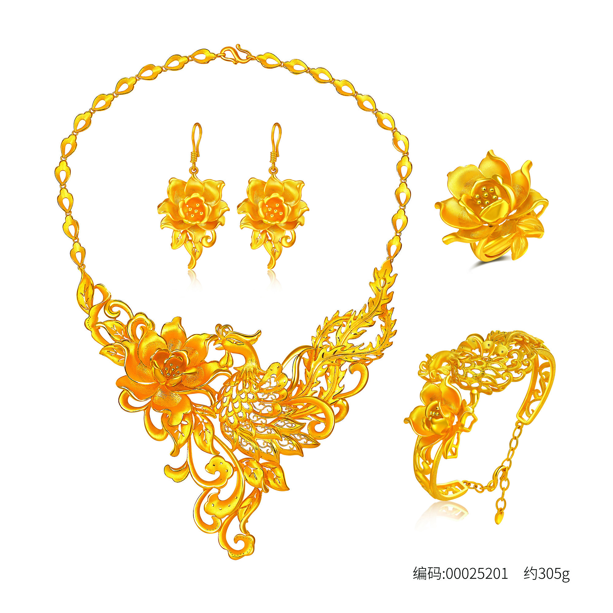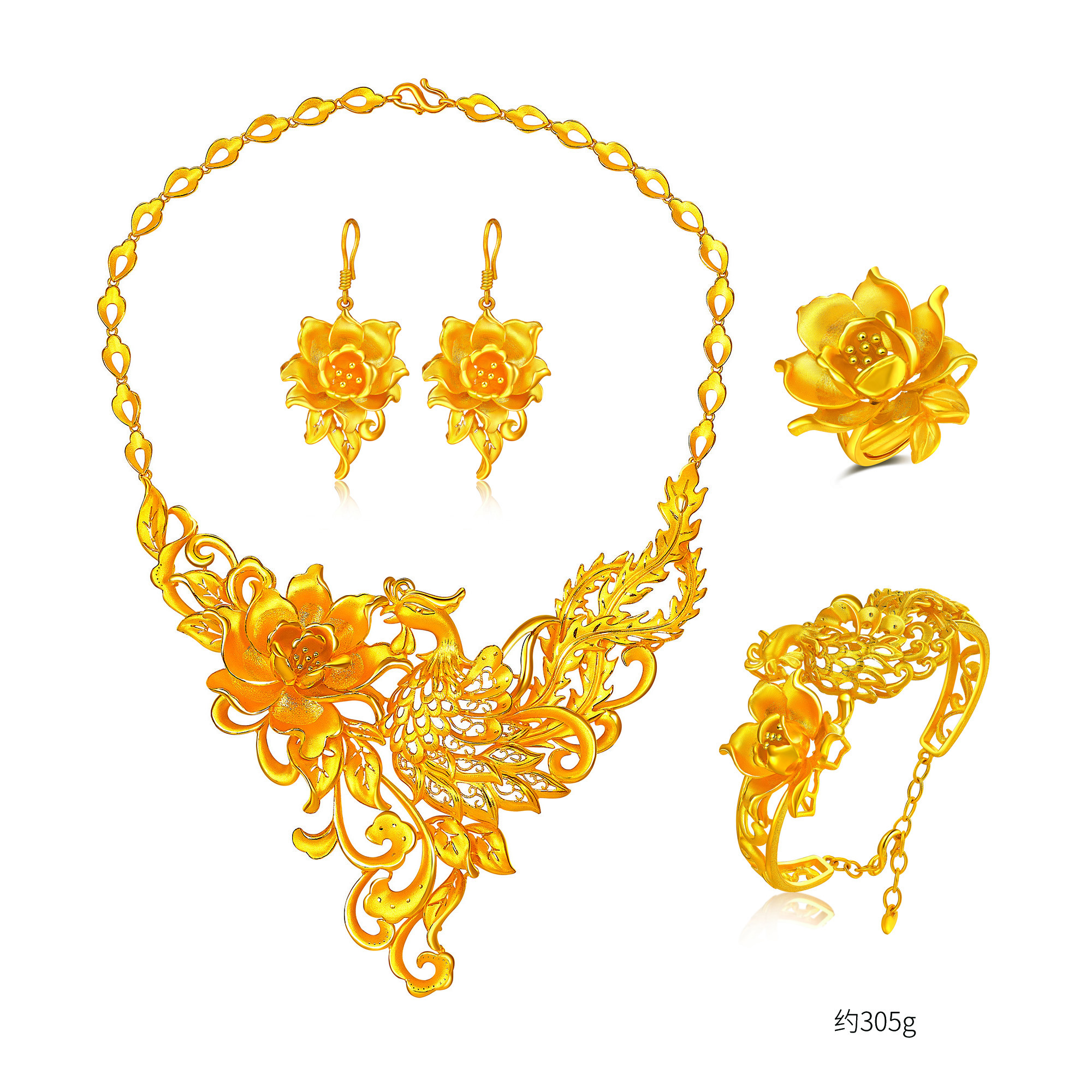 足金精品浪漫婚庆花丝蝴蝶兰拉丝三件套