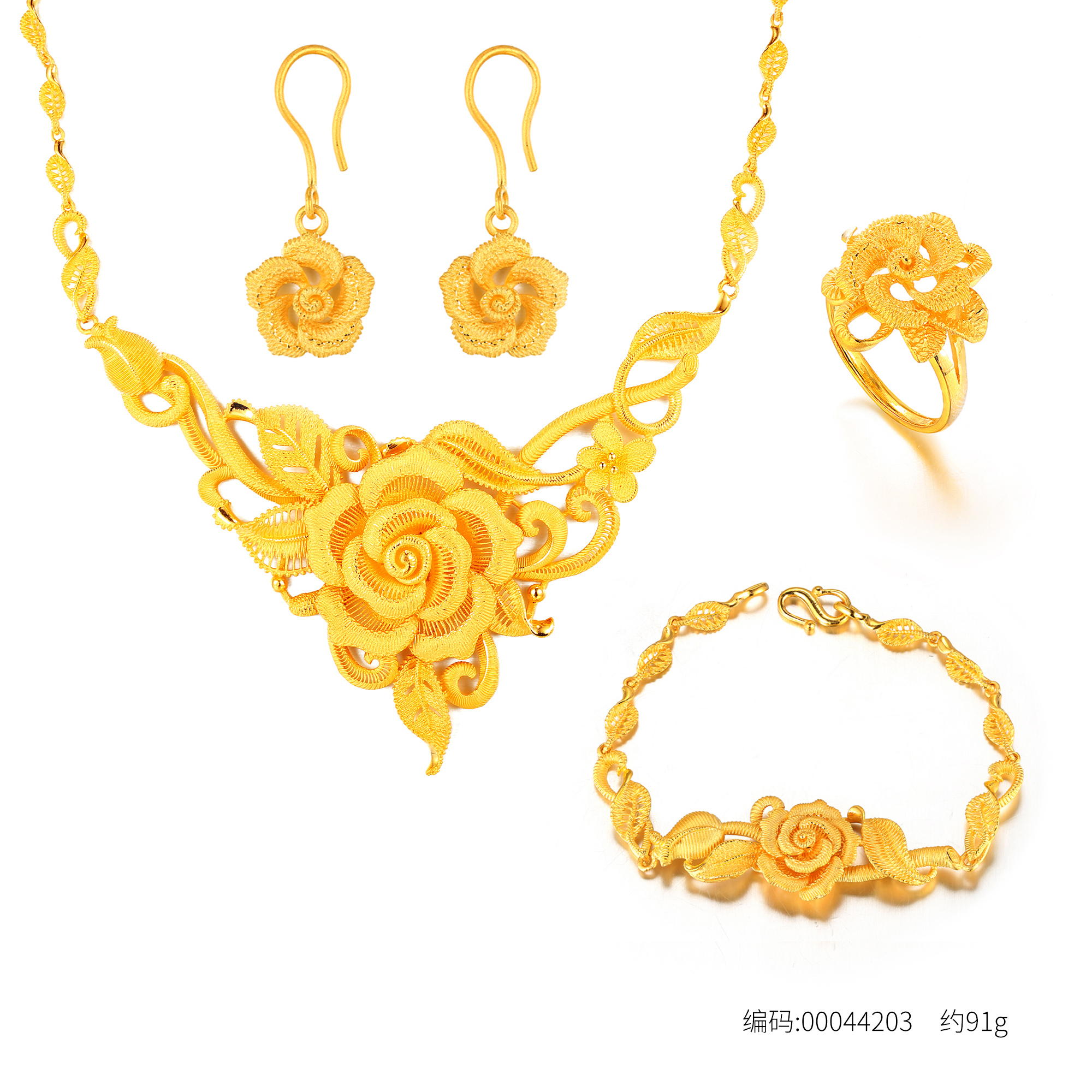 足金精品浪漫婚庆花丝蝴蝶兰拉丝三件套