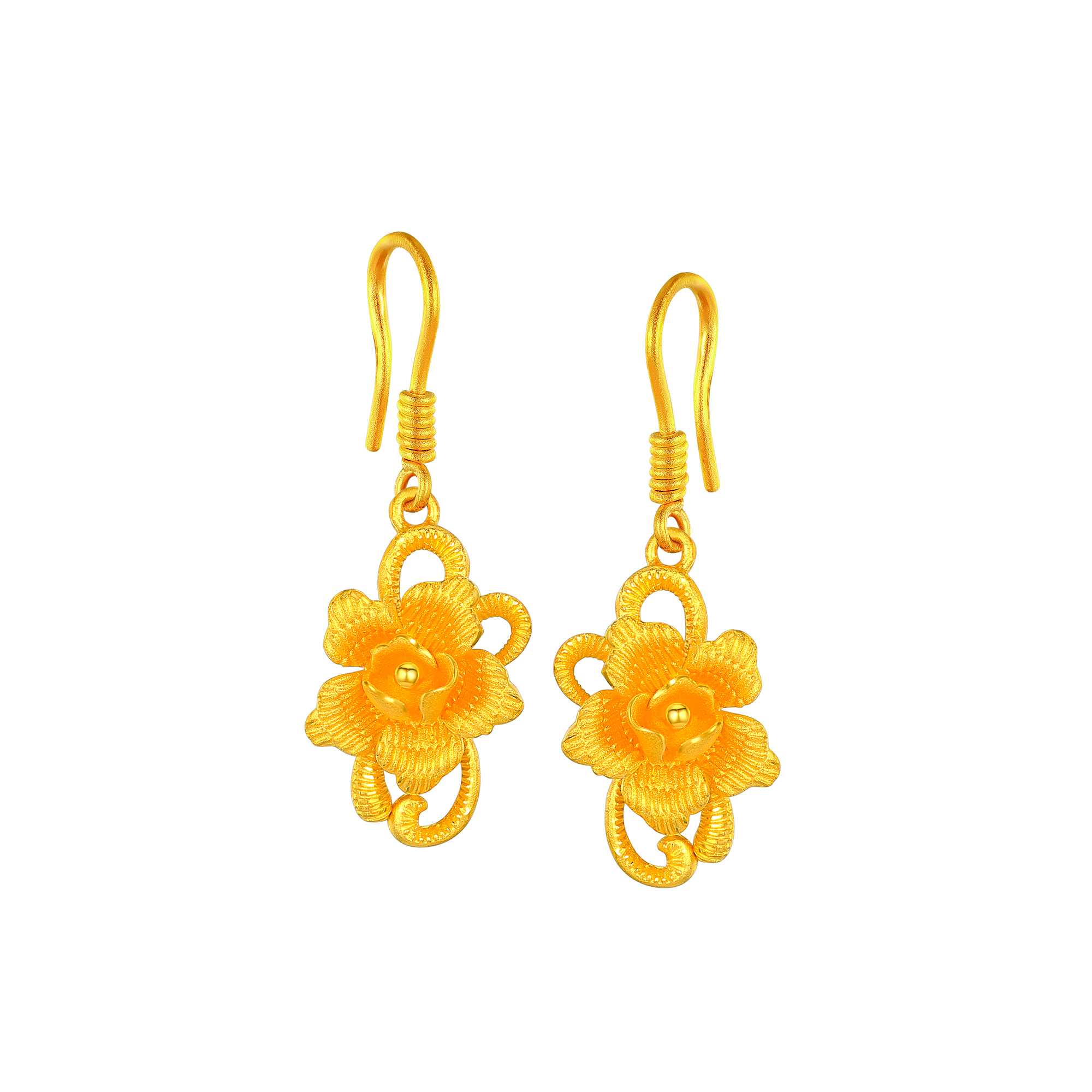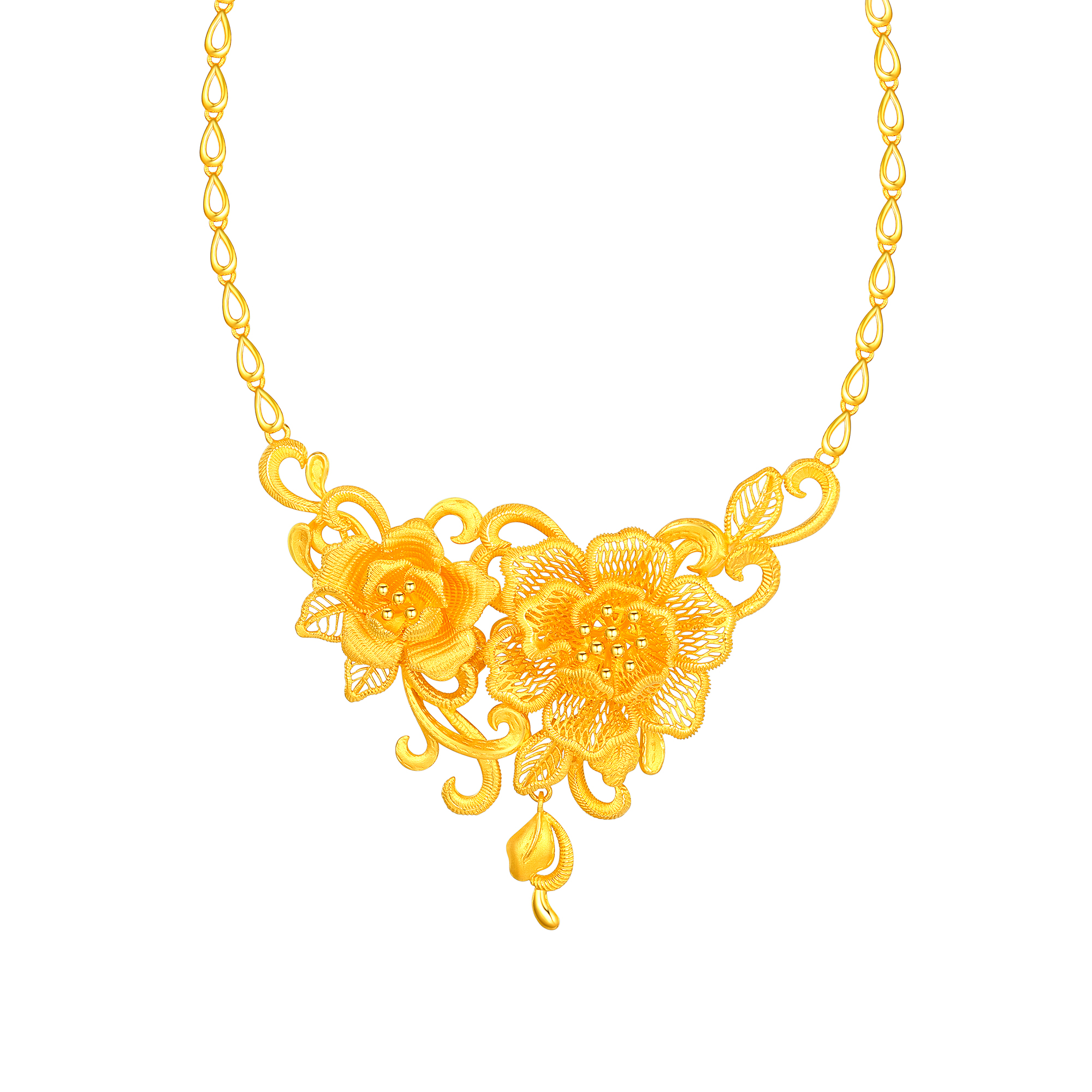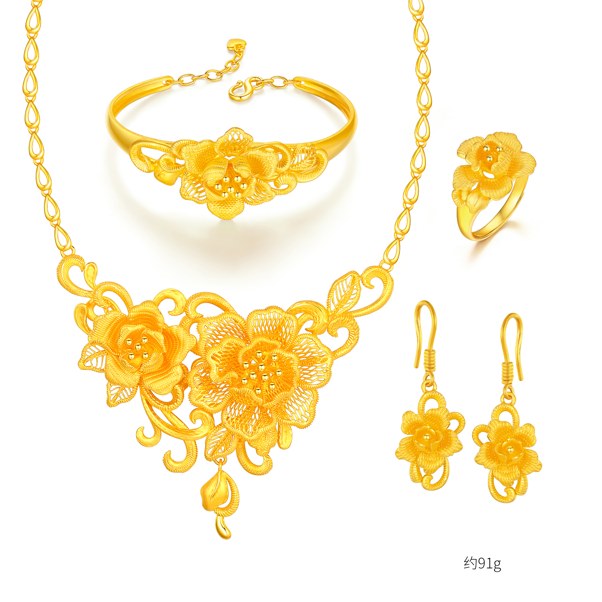 足金精品浪漫婚庆花丝蝴蝶兰拉丝三件套