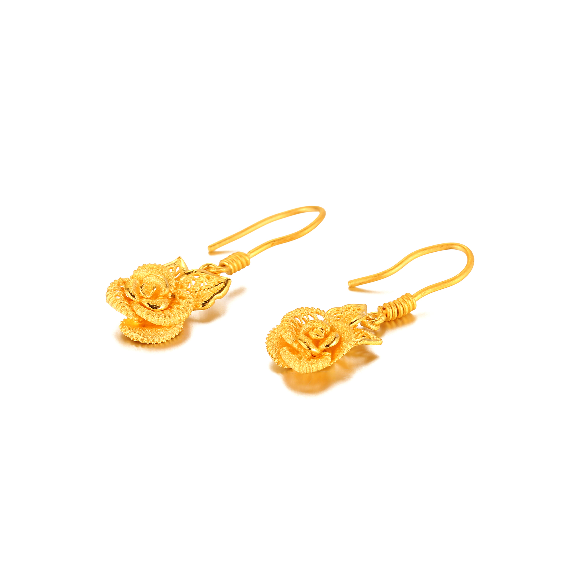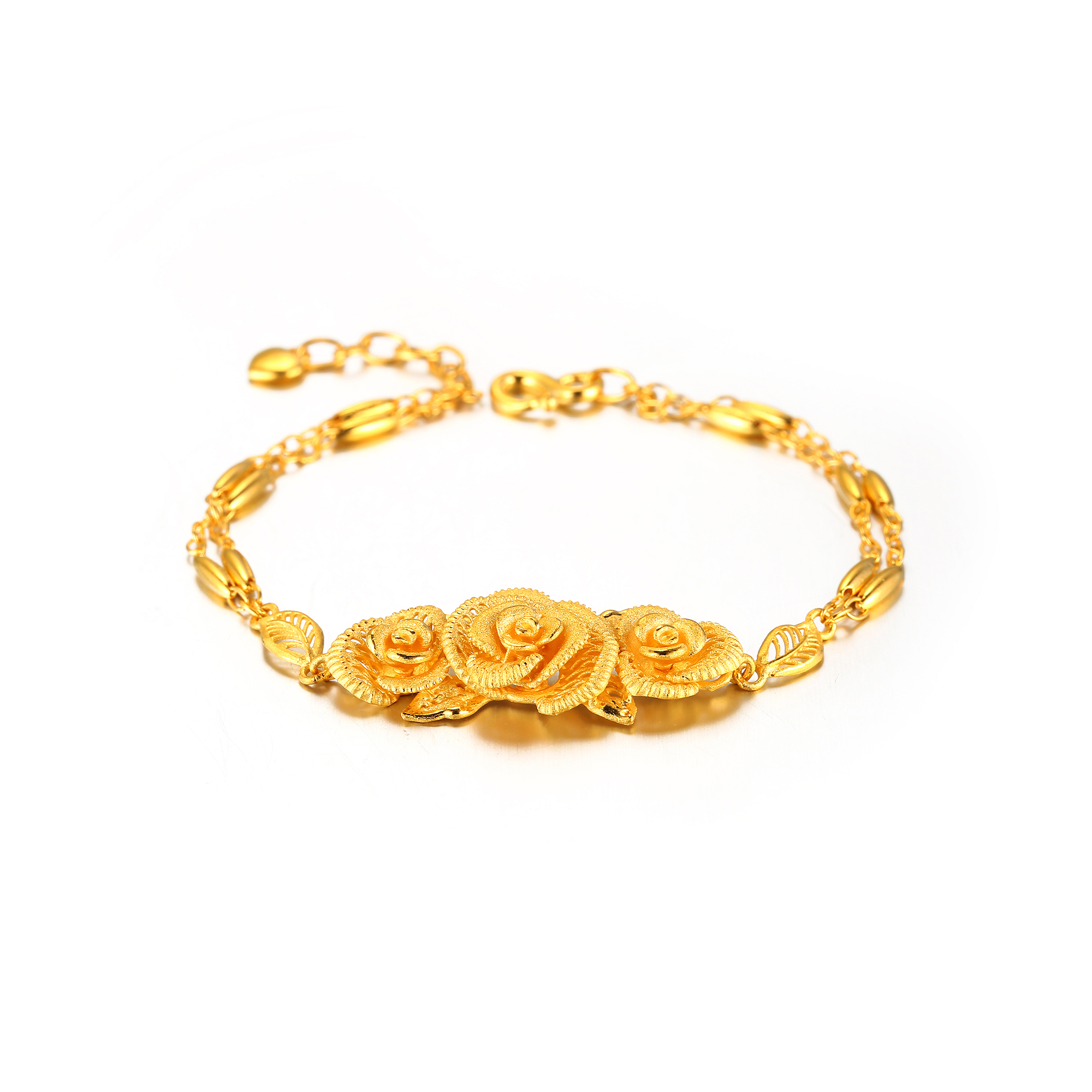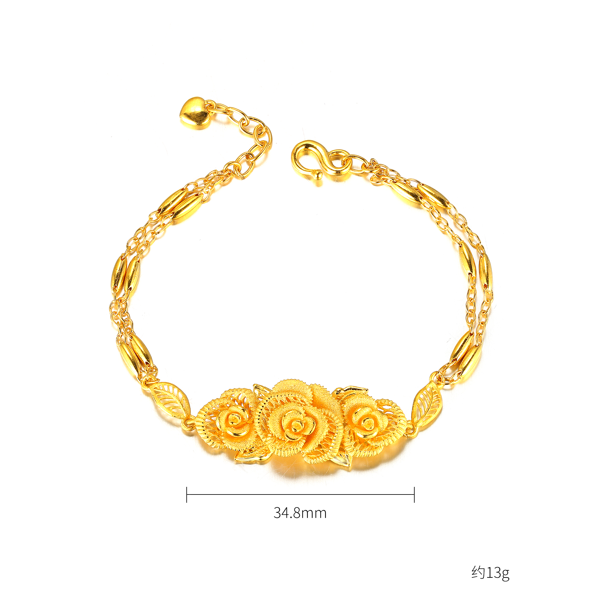 足金精品浪漫婚庆花丝蝴蝶兰拉丝三件套