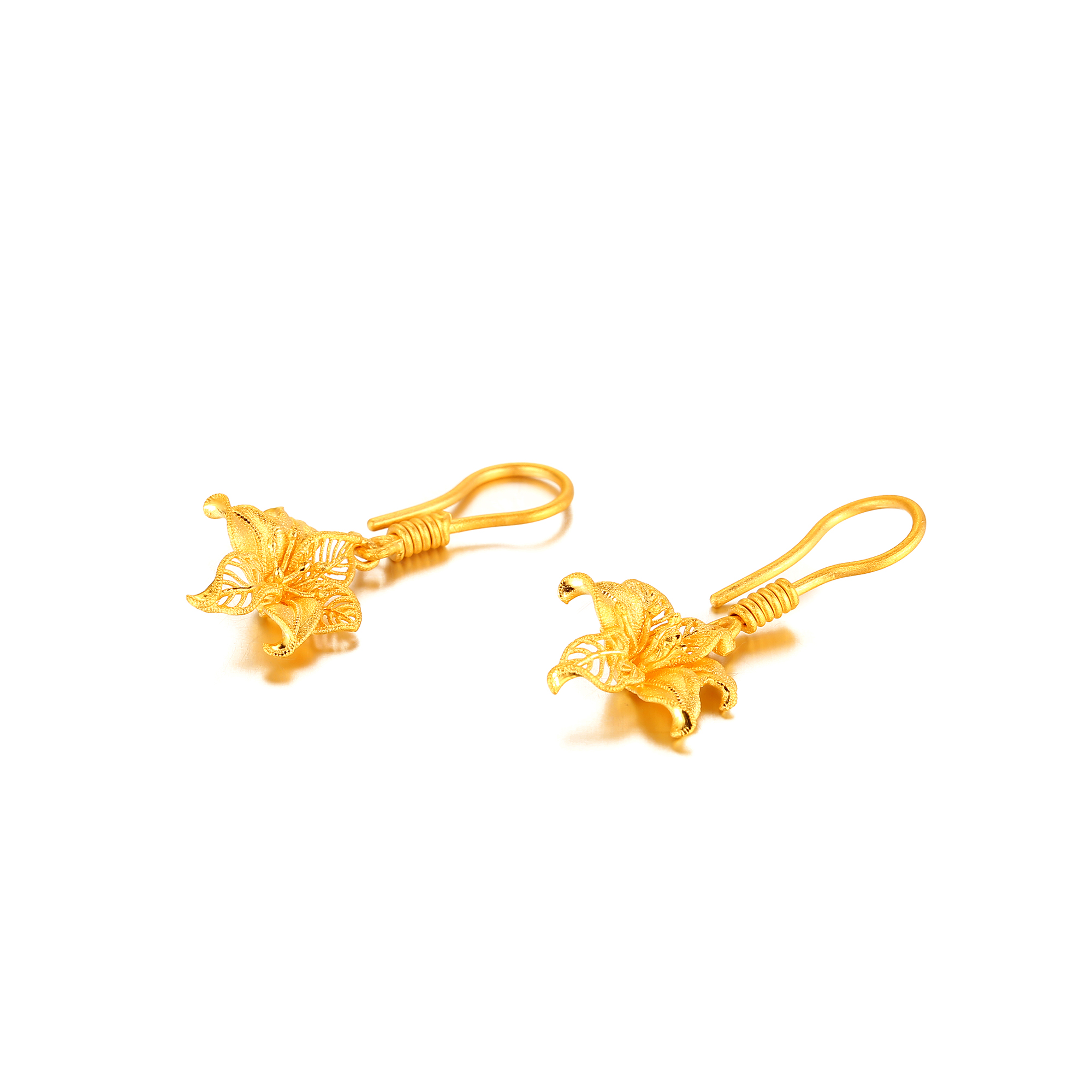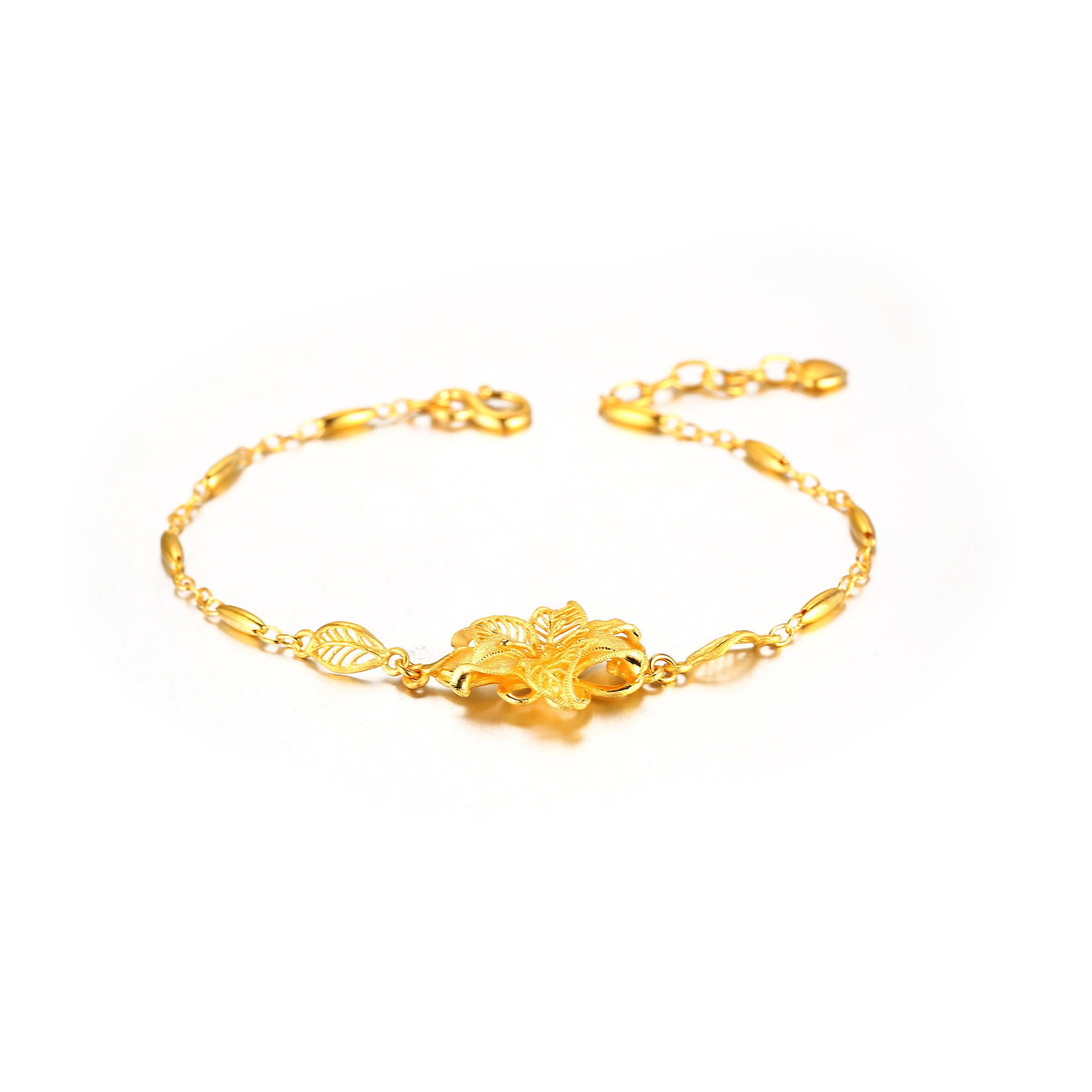 足金精品浪漫婚庆花丝蝴蝶兰拉丝三件套