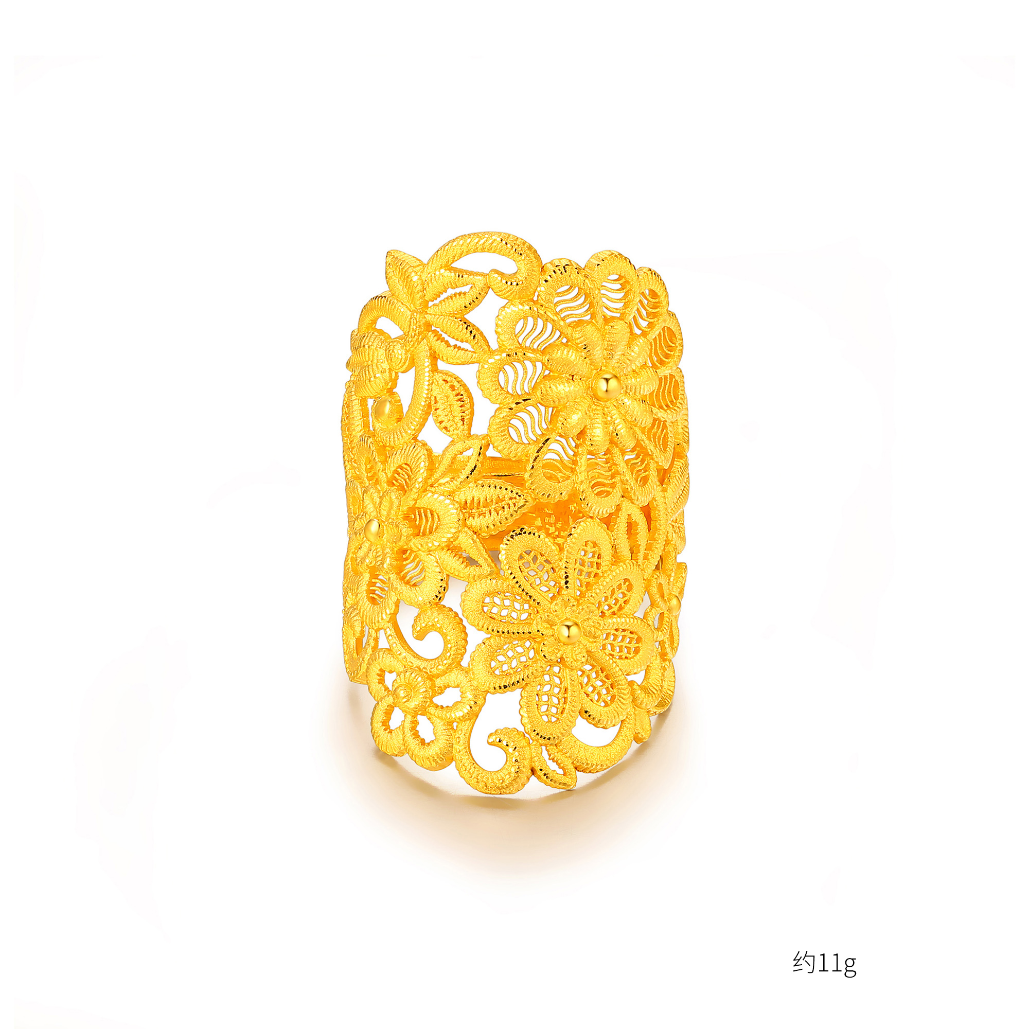 足金精品花形刺绣戒指