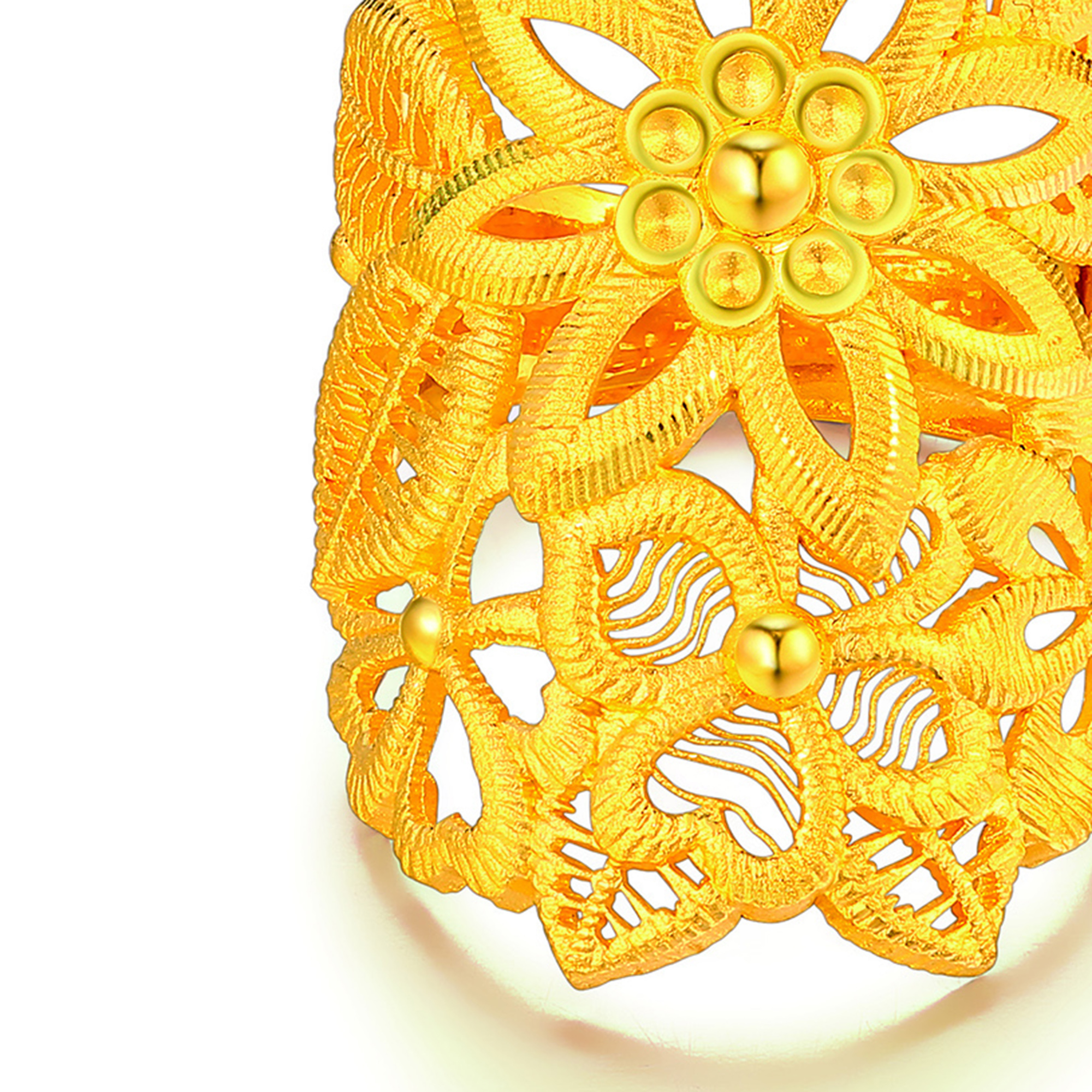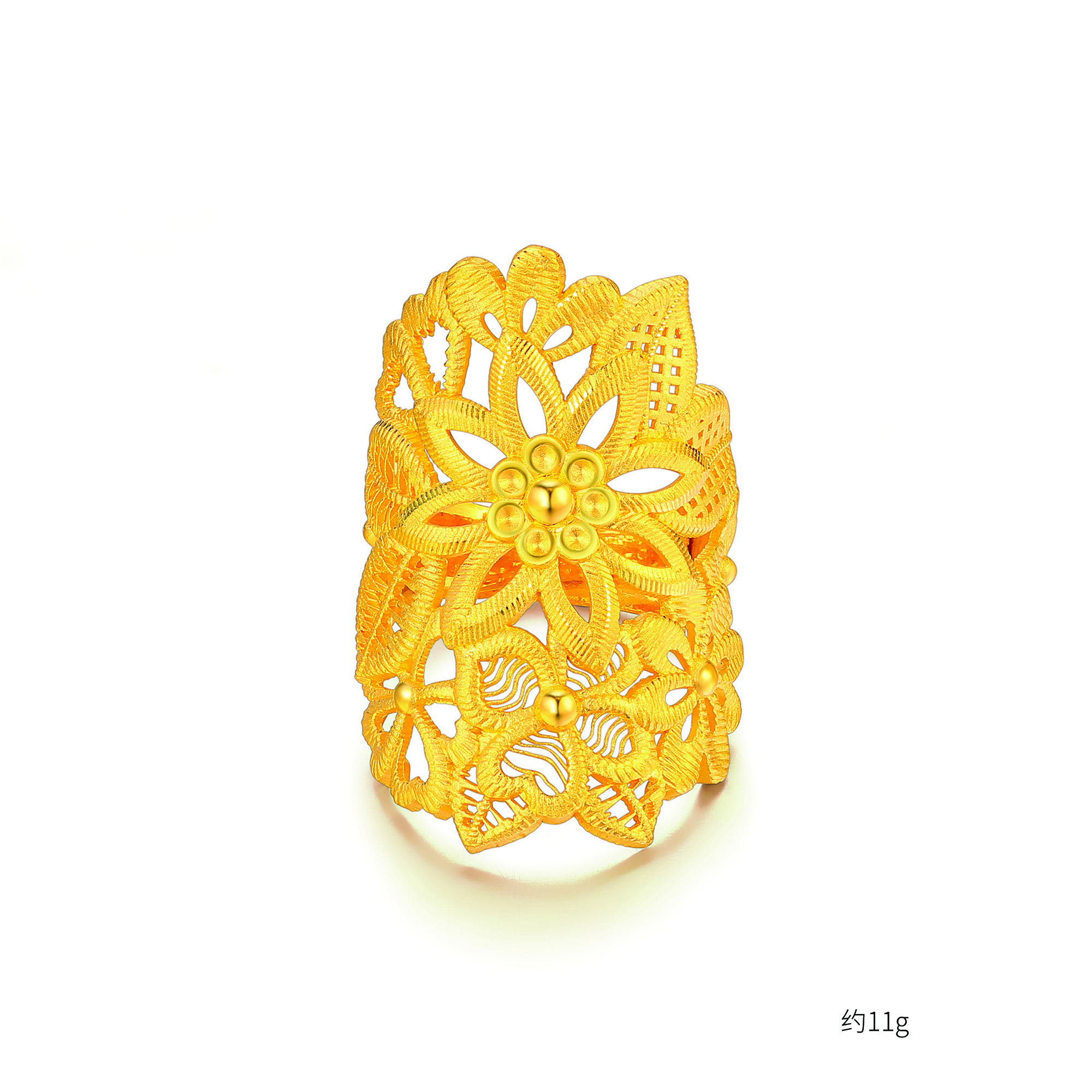 足金精品花形刺绣戒指