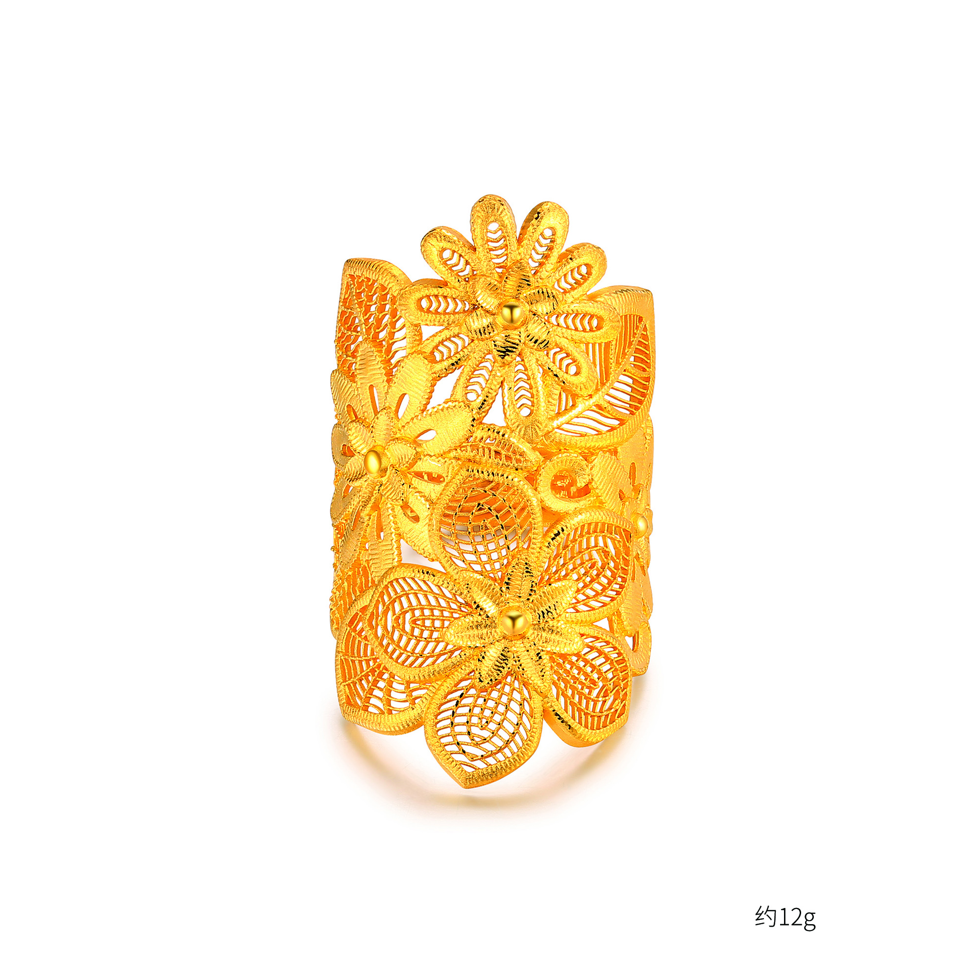 足金精品花形刺绣戒指