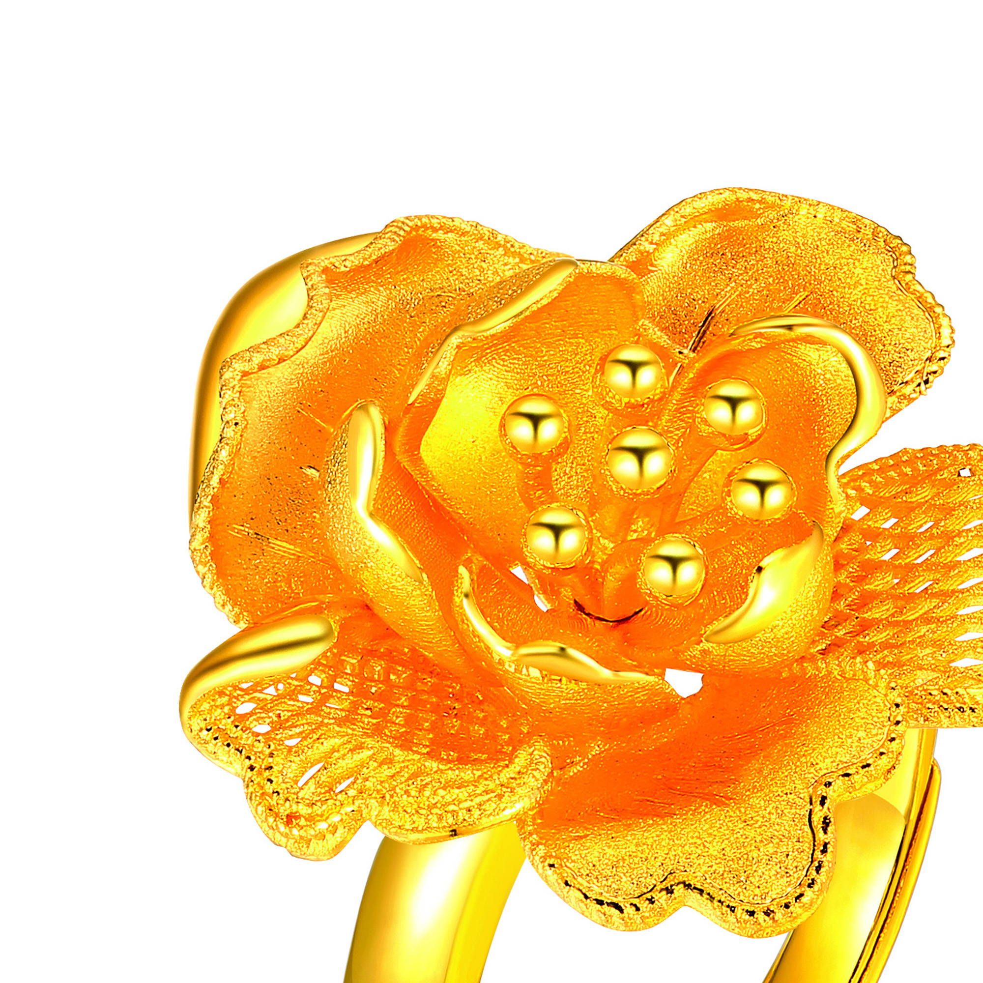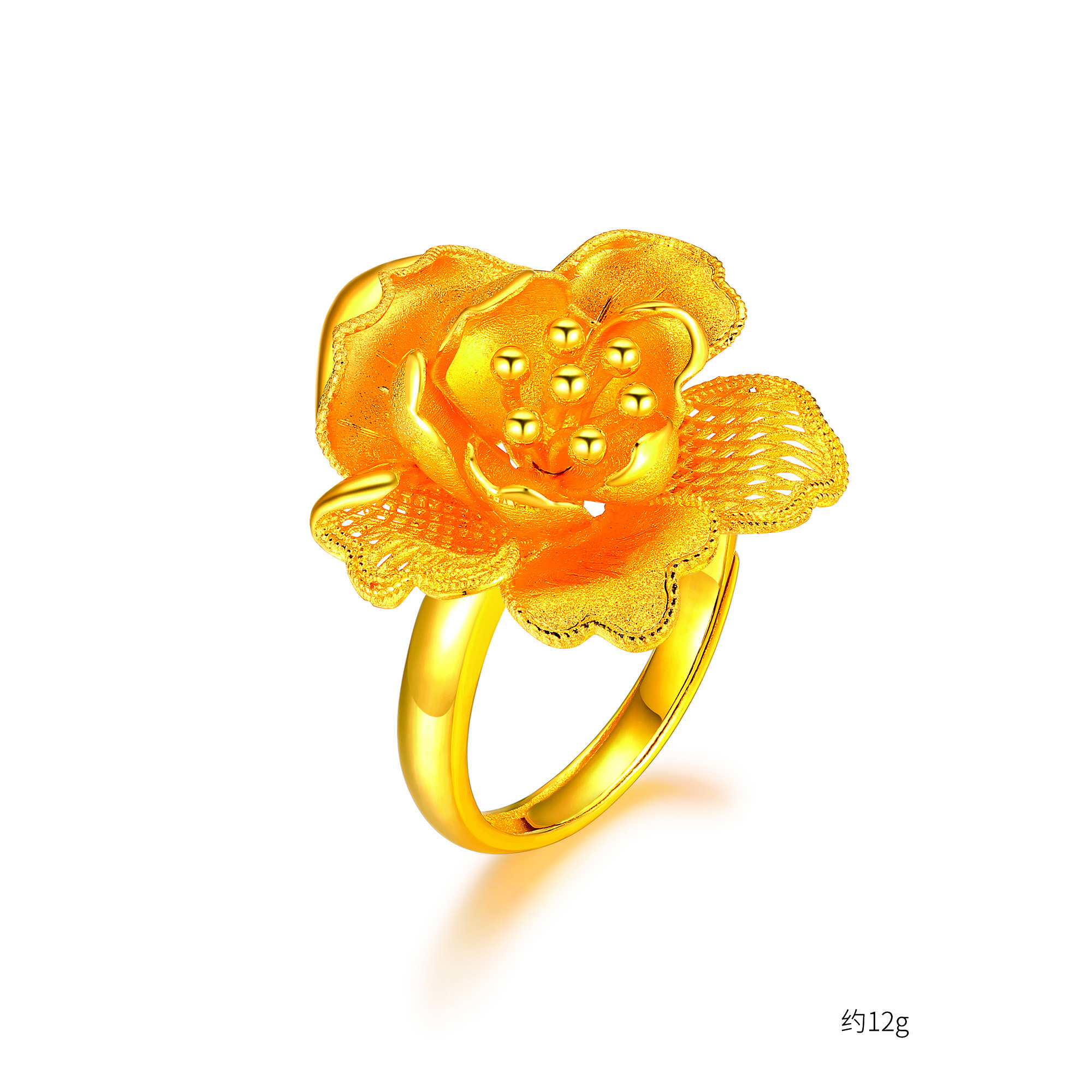 足金精品花形刺绣戒指