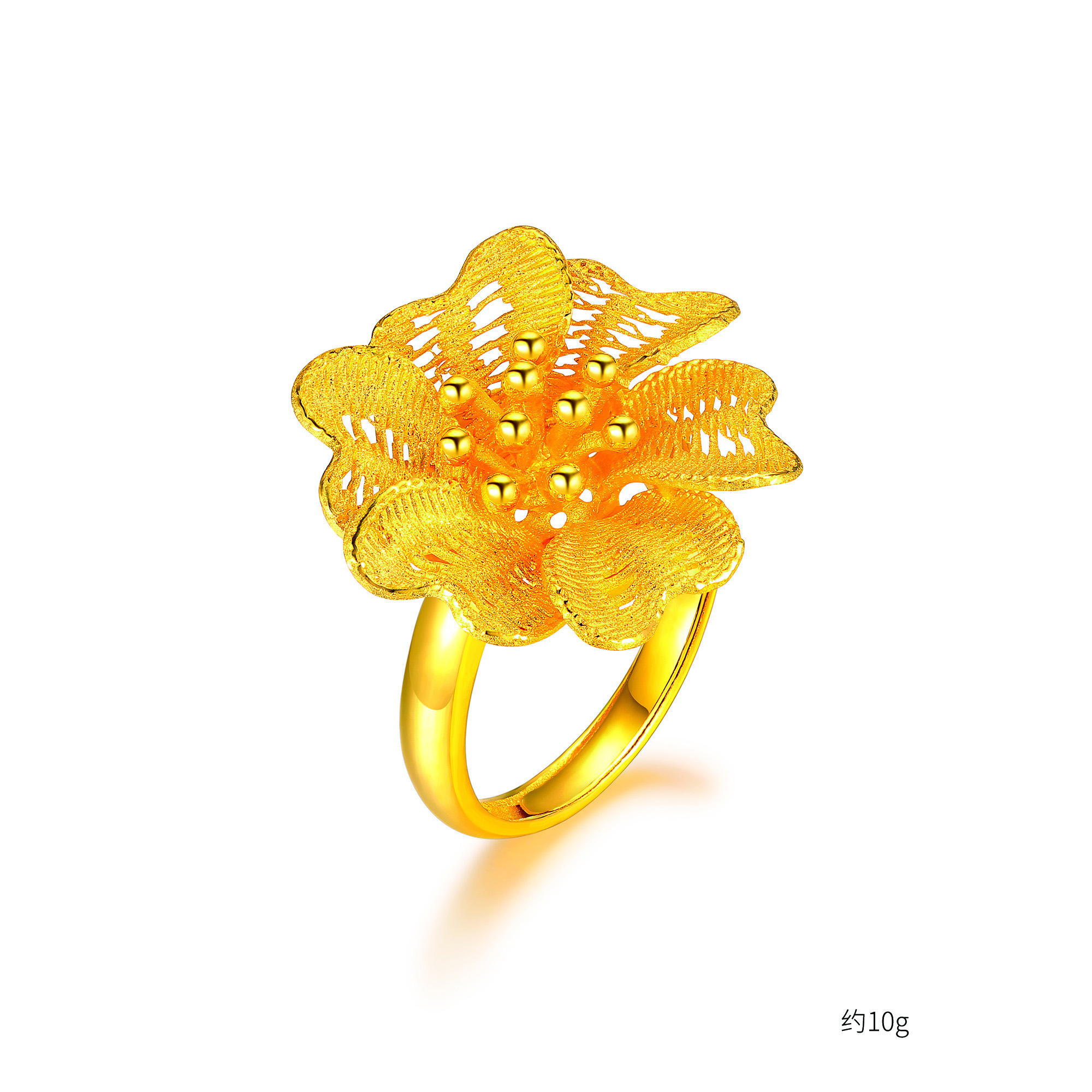 足金精品花形刺绣戒指