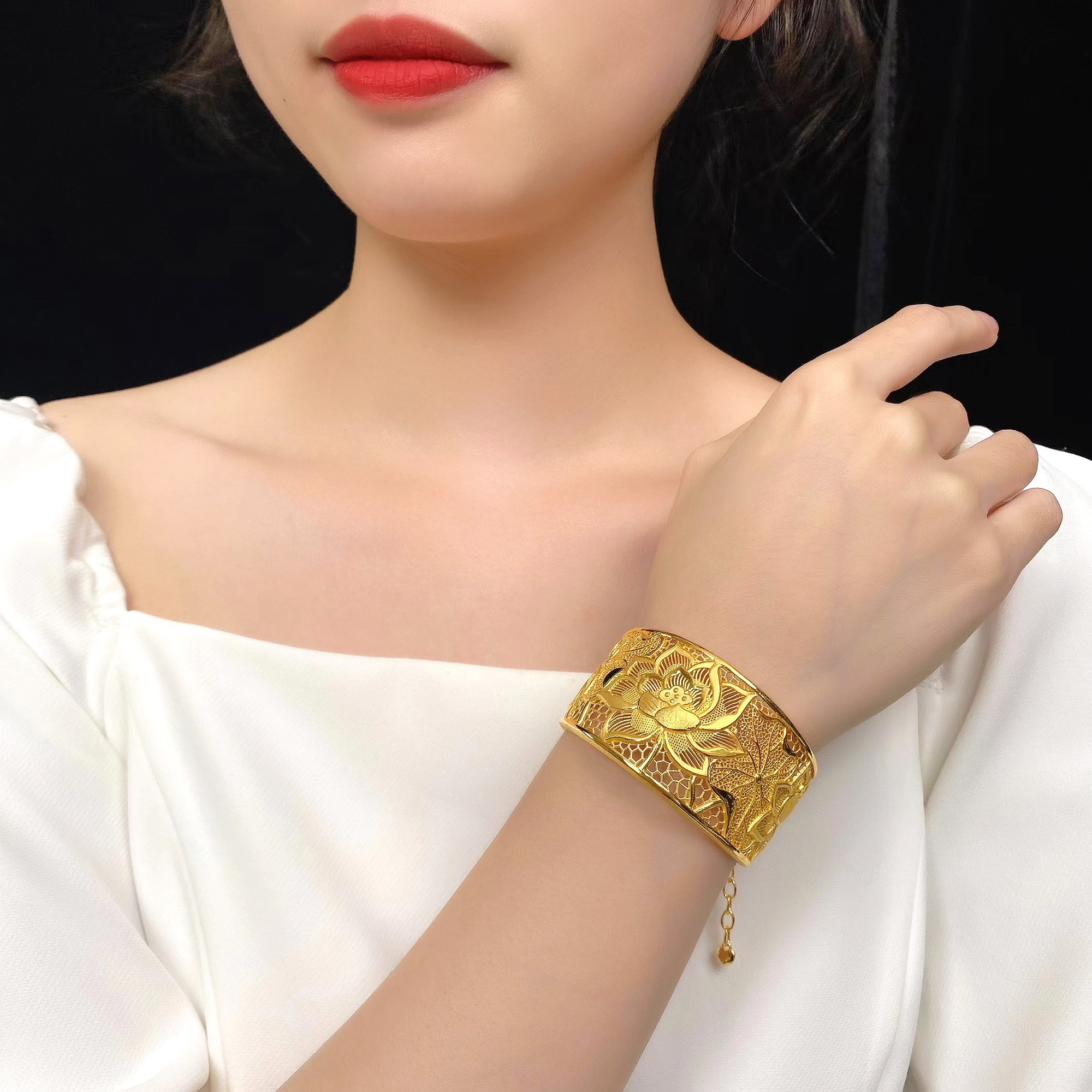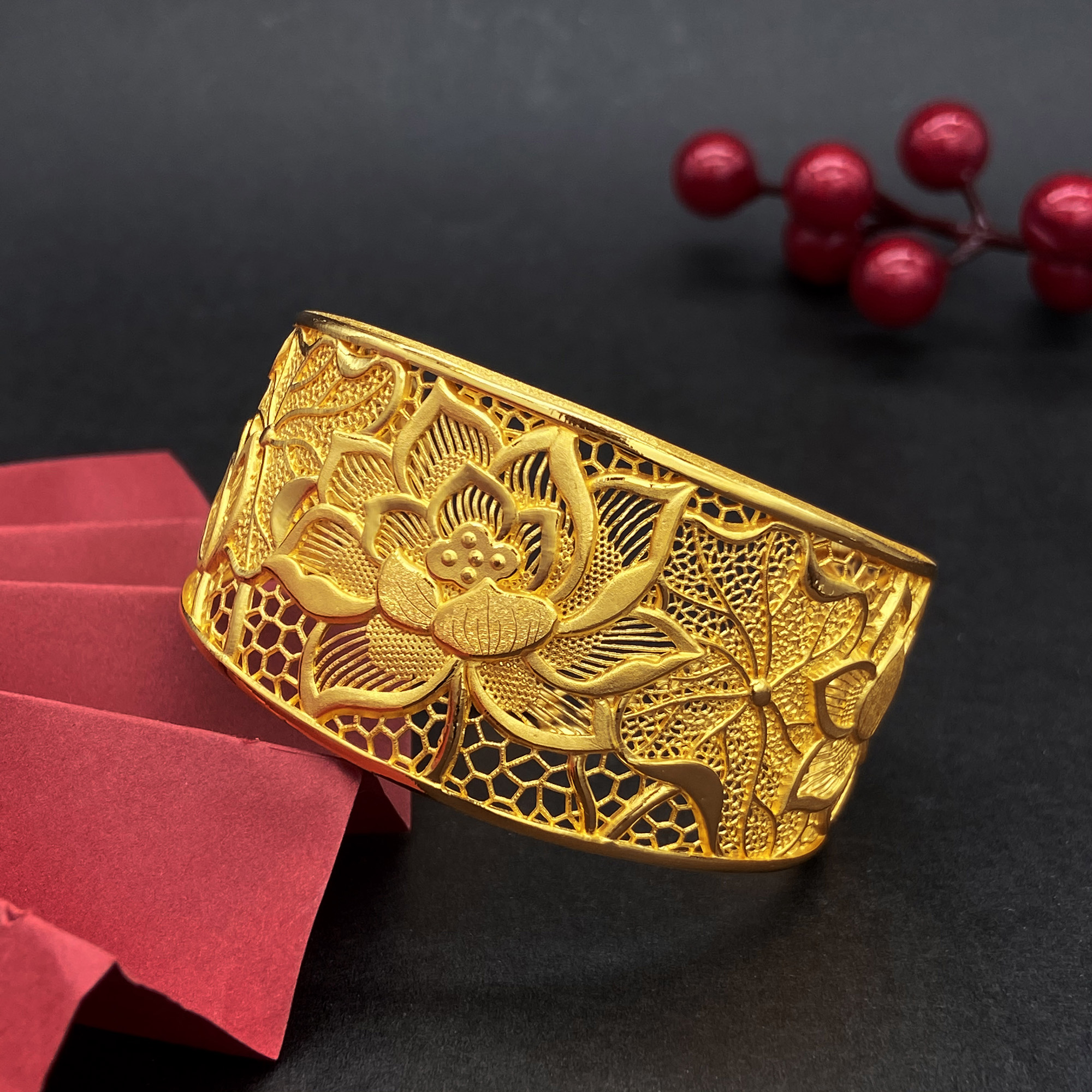 足金精品花头婚庆手镯
