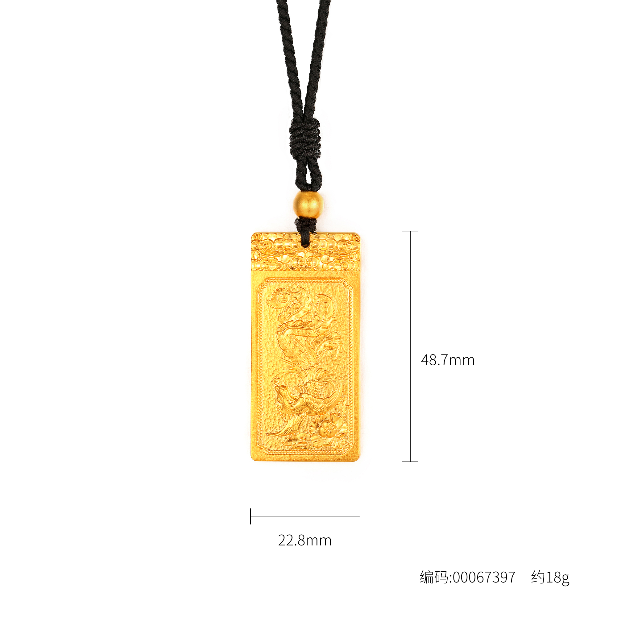 古法经典祥瑞龙牌凤羽方牌项链