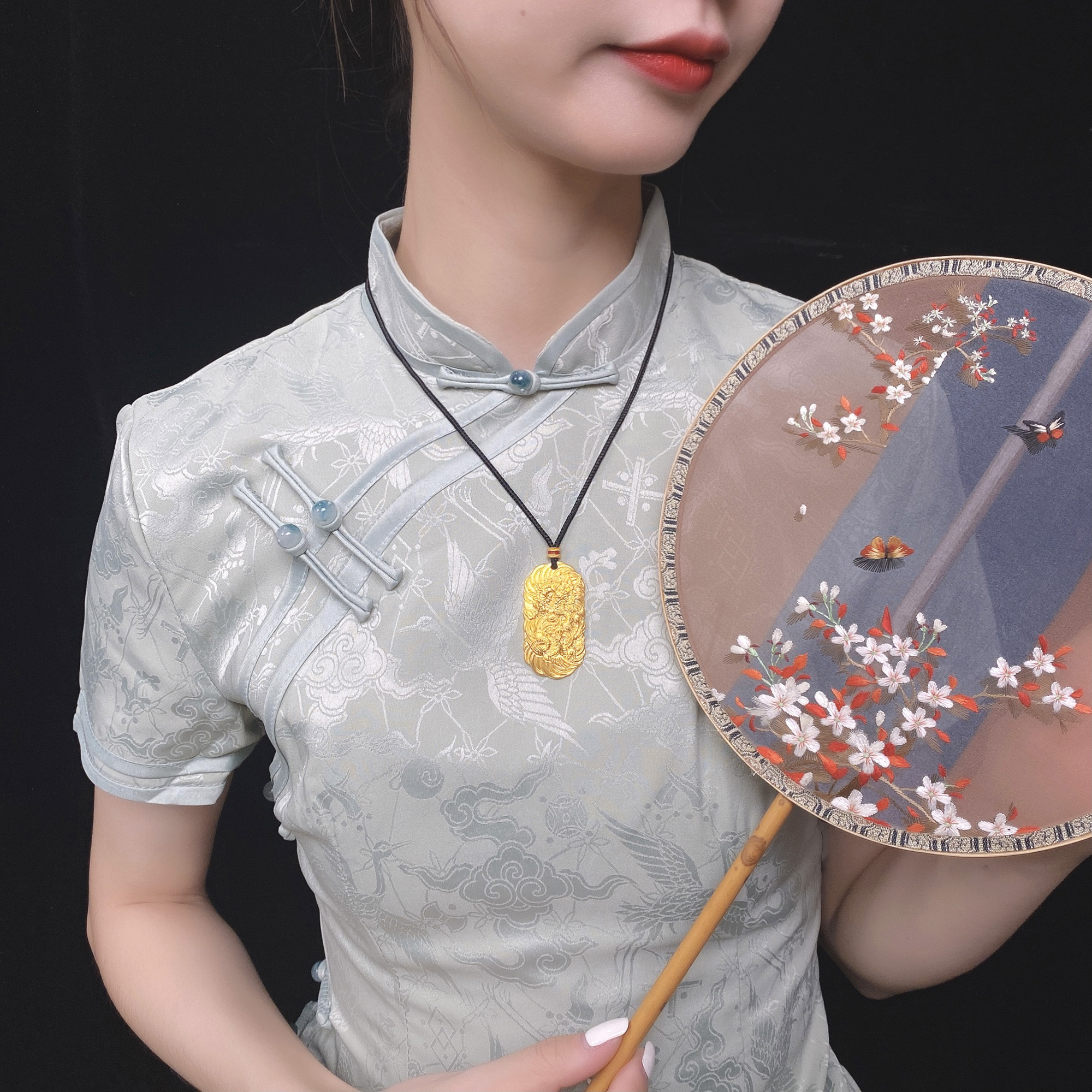 古法经典祥瑞龙牌鎏彩方牌项链