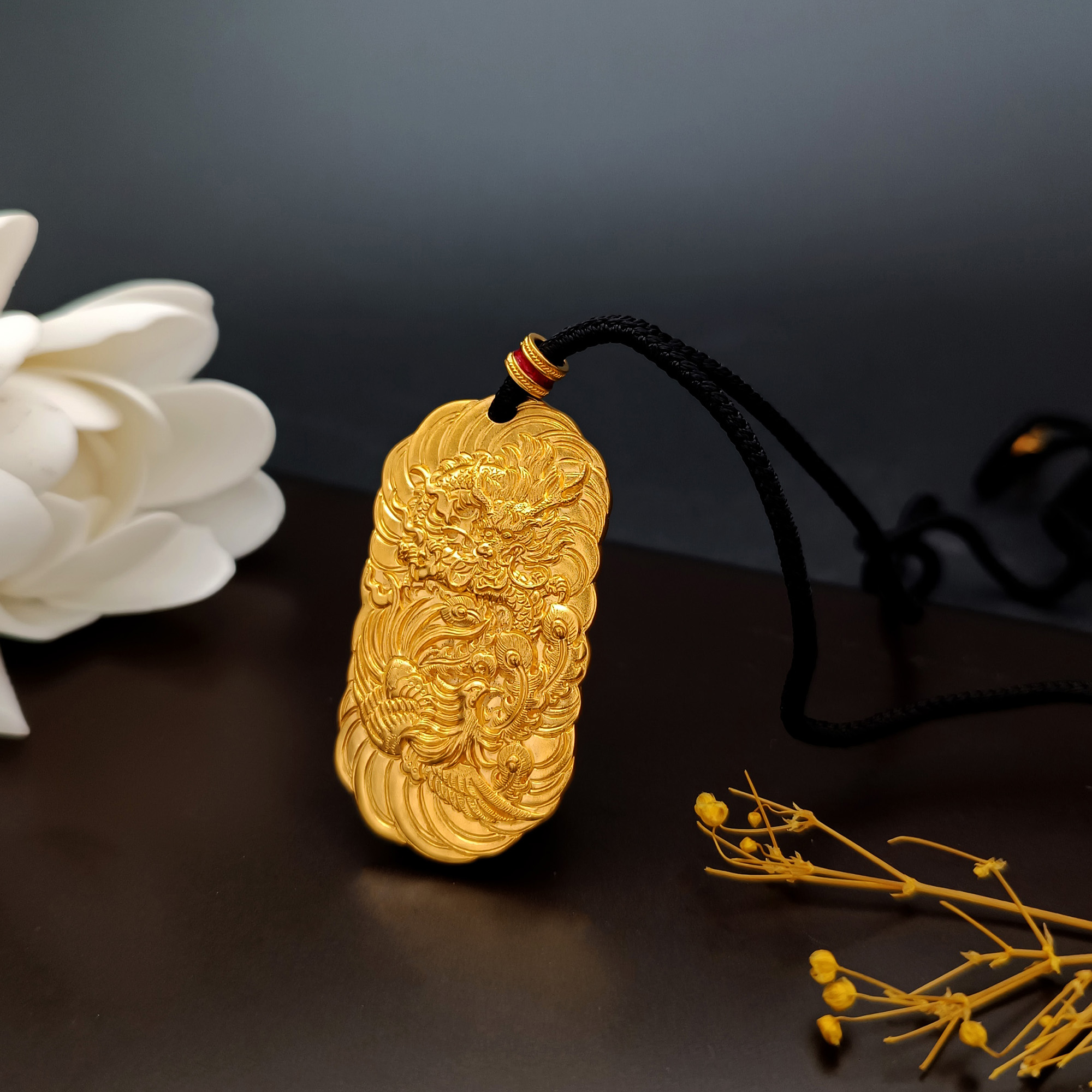 古法经典祥瑞龙牌凤羽方牌项链