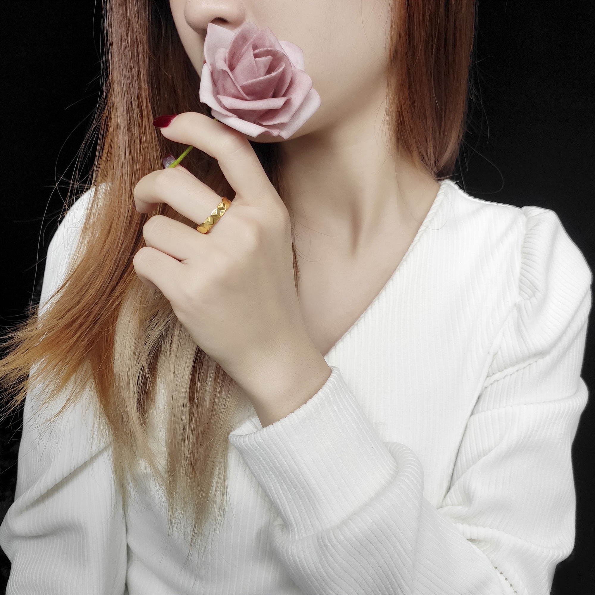 足金镜面金戒指