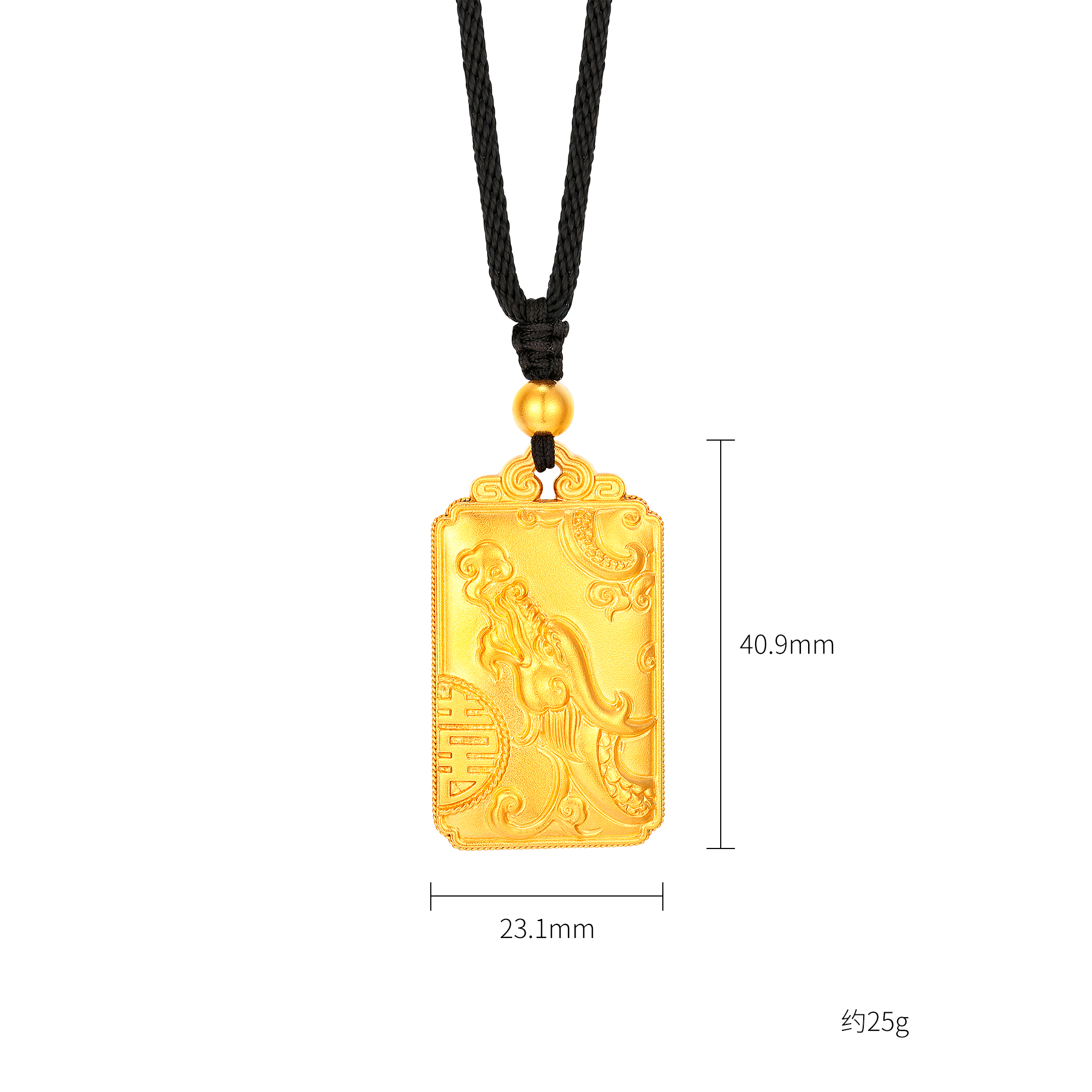>>古法经典祥瑞龙跃凤鸣方牌项链